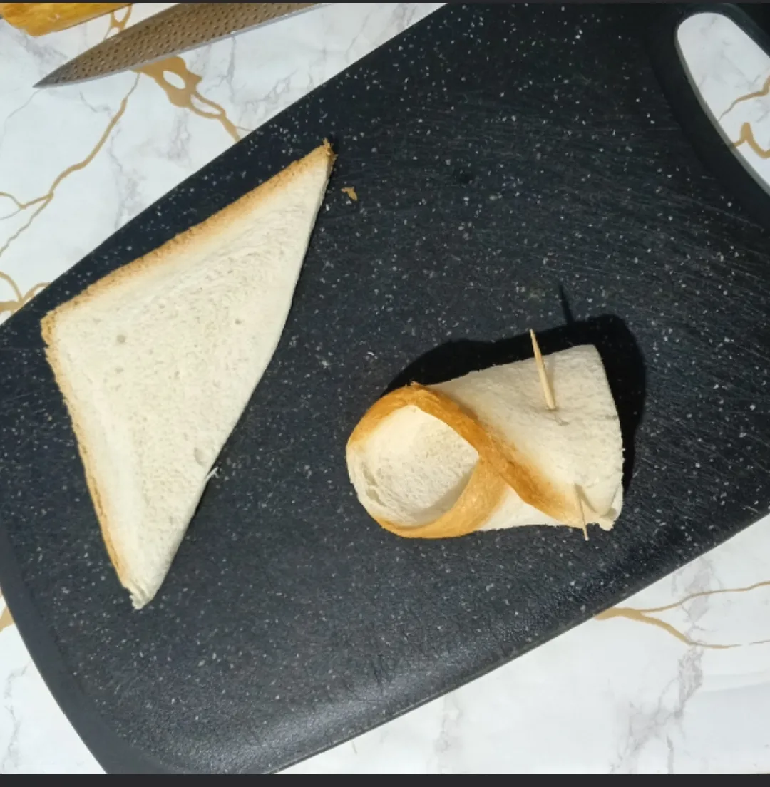 Хлеб раскатайте скалкой.