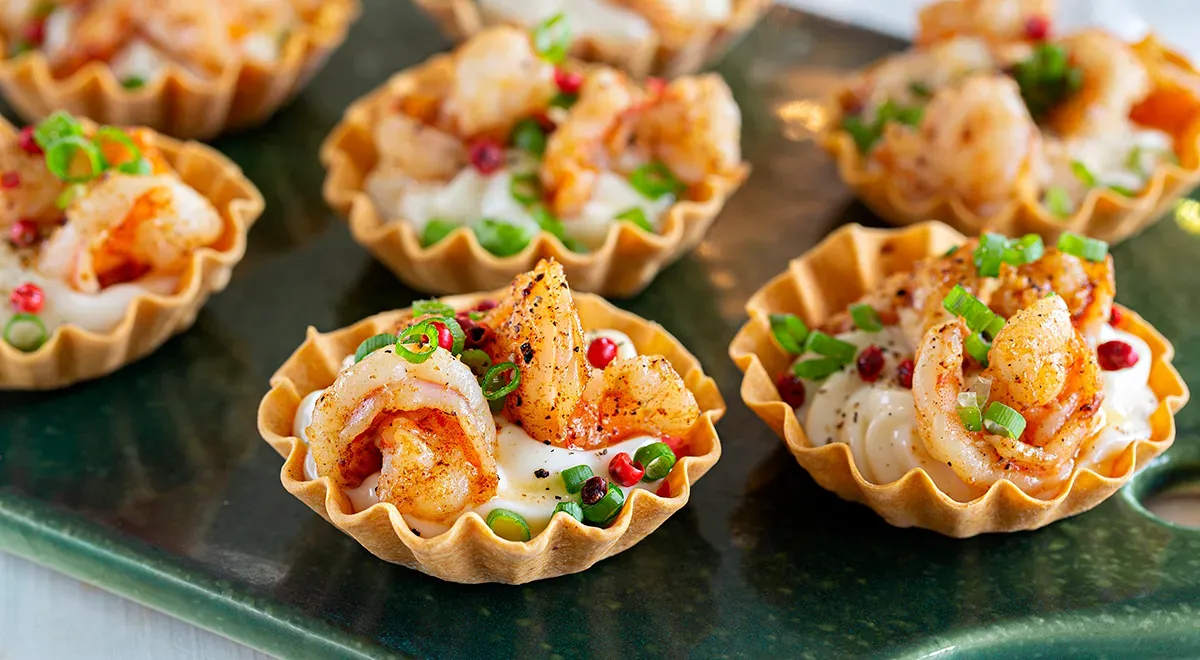 Тарталетки с начинкой из креветок с плавленым сыром украсят любой праздничный фуршет. А на их приготовление потребуется буквально четверть часа.
