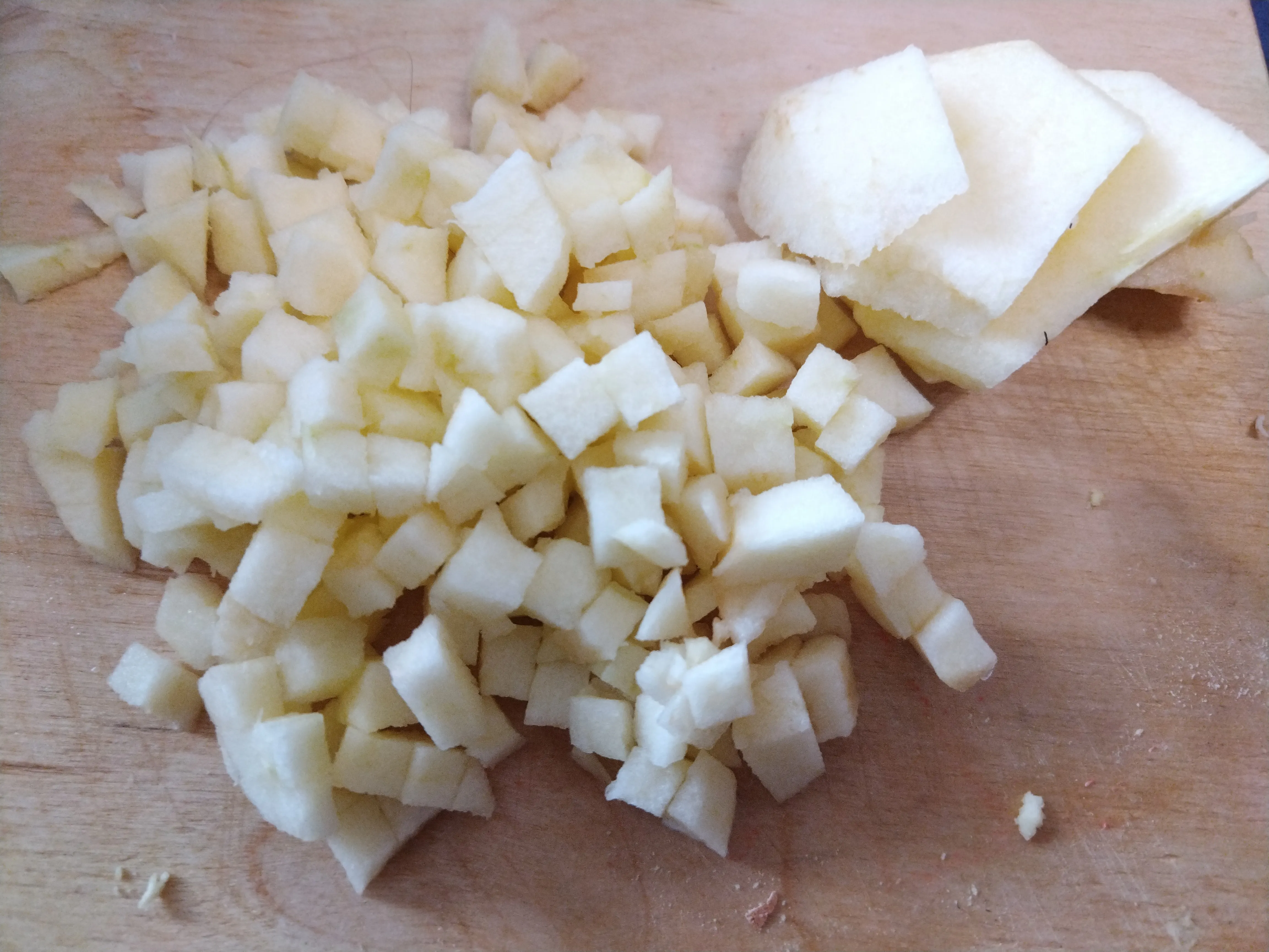 Яблоко очистите от сердцевины и кожуры, нарежьте мелкими кубиками.