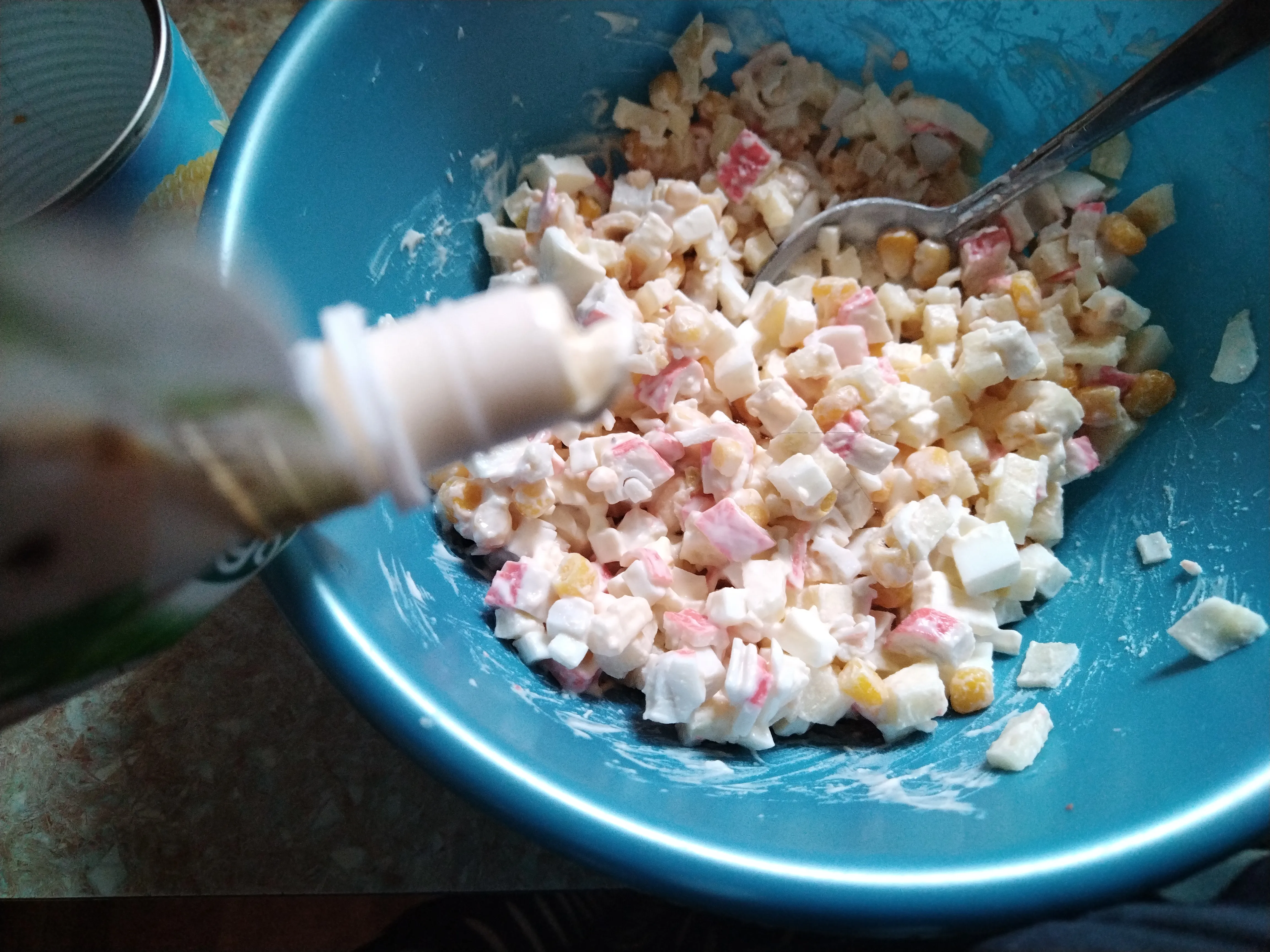 Заправьте салат майонезом.