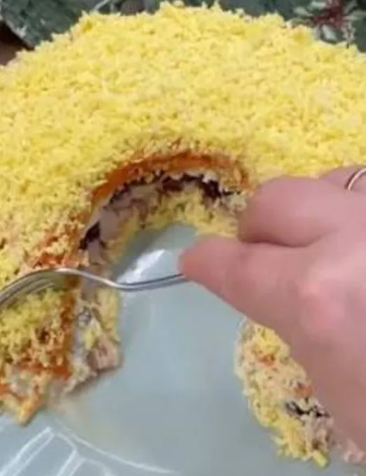 Это один из самых красивых и символичных новогодних салатов к году Лошади. Отличный выбор для праздничного стола, ведь подкова ассоциируется с удачей, а форма блюда напоминает символ грядущего года. Такой салат понравится гостям и создаст праздничное настроение.