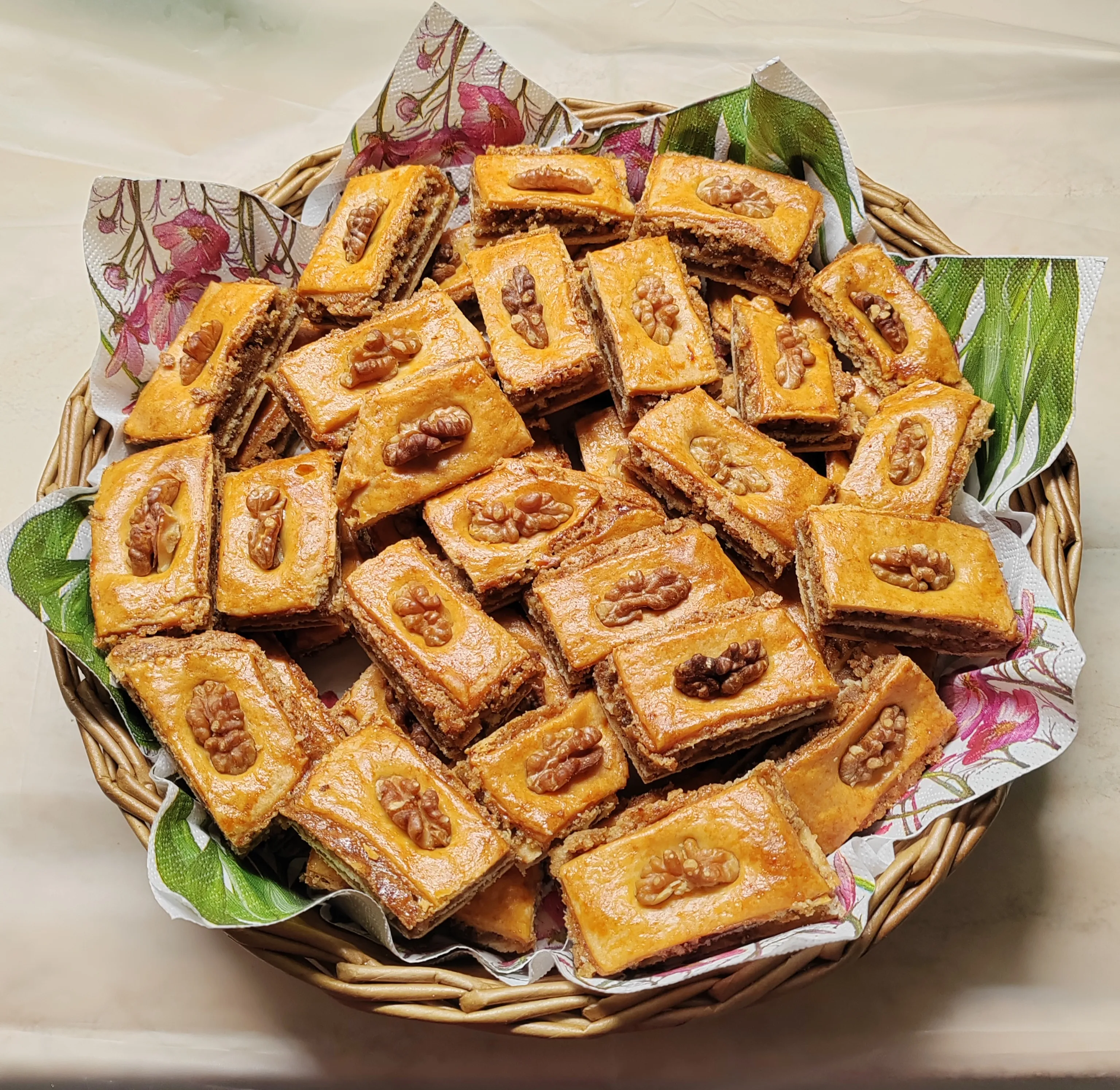 В семье автора все любят эту сладкую ароматную выпечку. Пахлаву можно предложить к праздничному столу или взять с собой в гости в качестве подарка, она с лёгкостью переносит любую транспортировку и остаётся вкусной на протяжении нескольких дней. История блюда уходит в XV век. Страны Ближнего Востока, Кавказа и Баклан претендуют на пахлаву в качестве национального блюда. Некоторые историки считают родиной пахлавы Турцию или Персию. Из множества рецептов стоит точно попробовать этот.