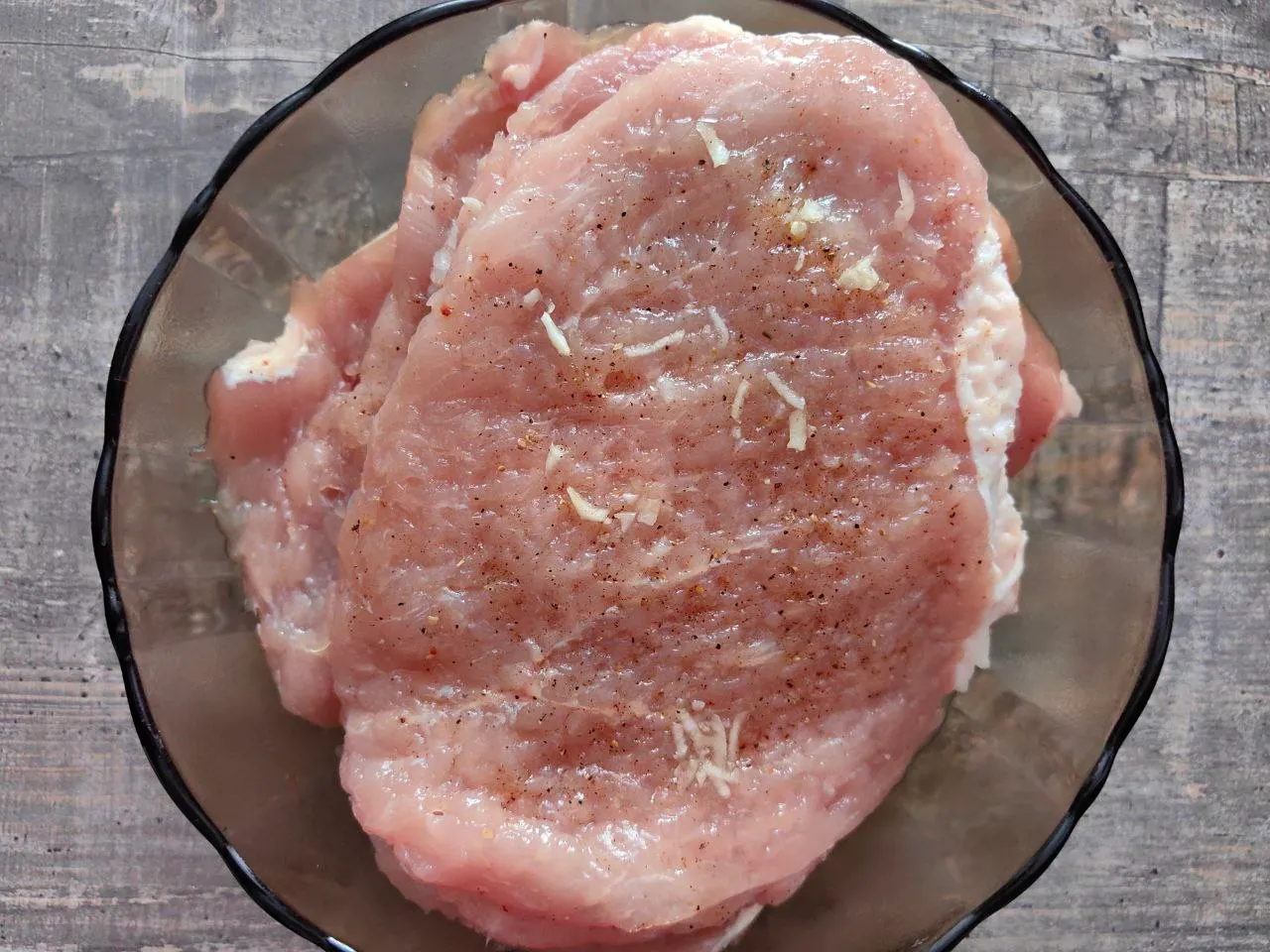Нарежьте мясо на стейки шириной 2см, отбейте, посолите, поперчите.