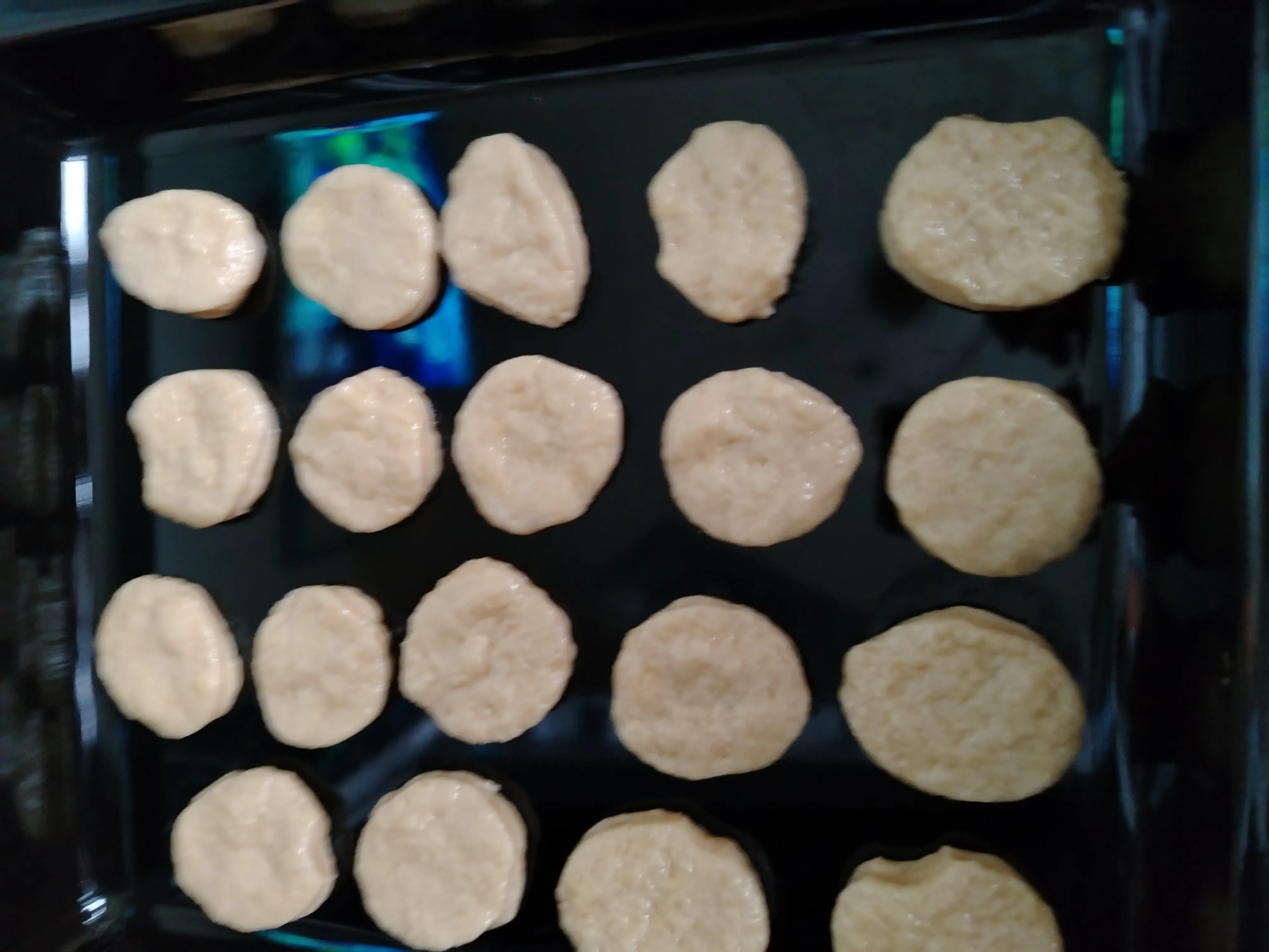 Раскатайте тесто сделайте печенье любой формы. Можно сделать круглые стаканом.