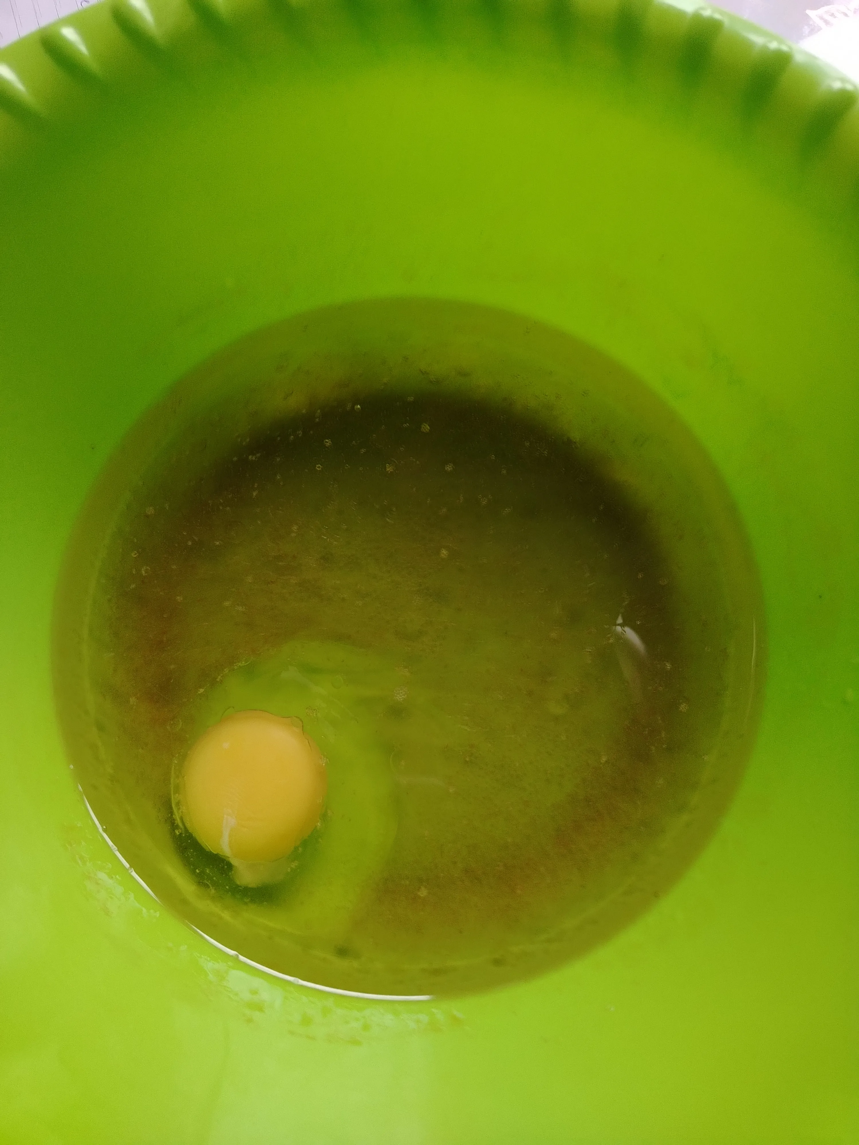 Рассол процедите и добавьте соду, перемешайте. Затем добавьте яйцо.