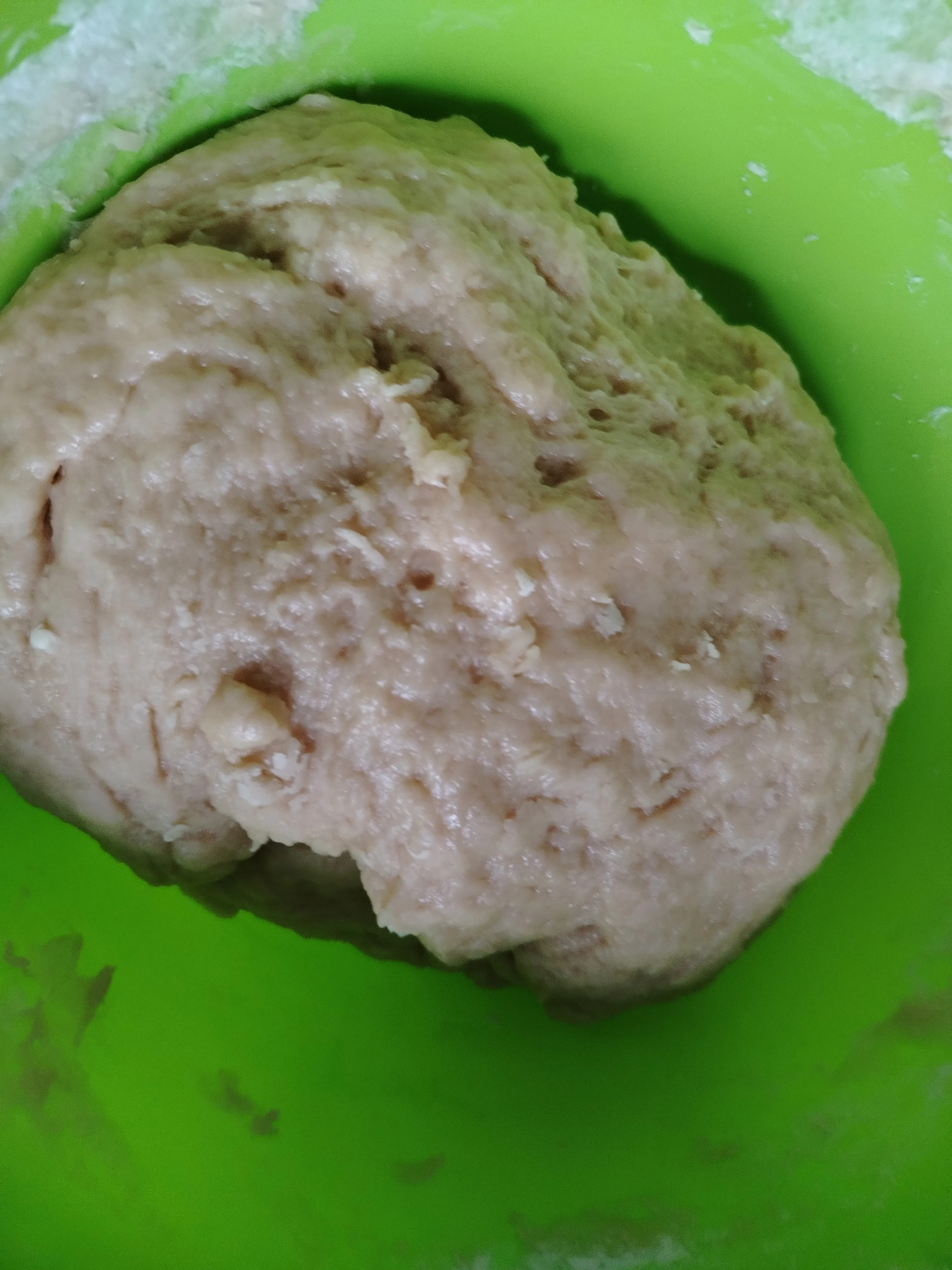 Перемешайте, добавьте сахар, масло и муку. Замешайте тесто.