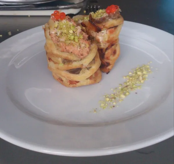Выпекайте в разогретой до 180°C духовке около 20-30 минут, в зависимости от мощности духового шкафа. Перед подачей блюдо можно украсить, например, икрой или измельчёнными фисташками и зеленью.