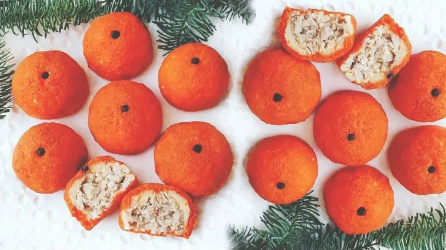 По такому же принципу сформируйте лепёшку из моркови и заверните в неё. Проделайте это со всеми шариками.