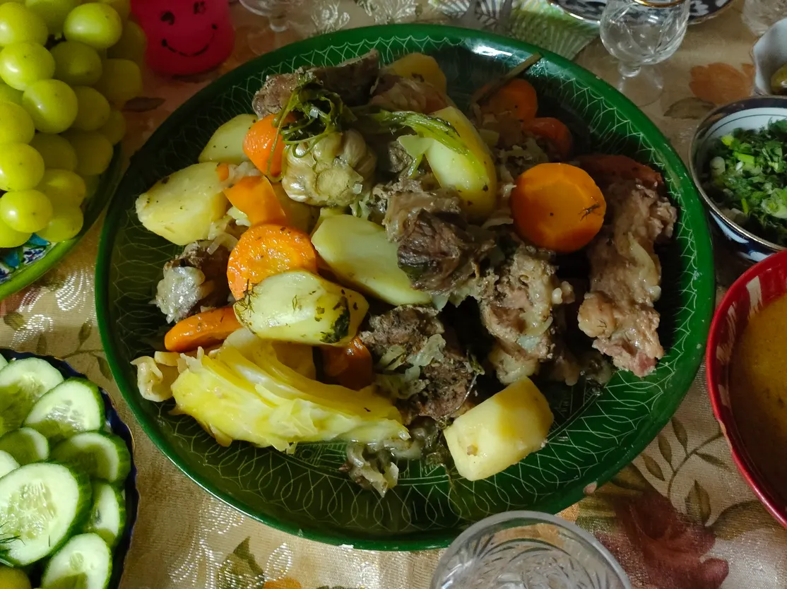 Приготовьте басму на праздничный стол. Очень многие путают басму и домламу, но это совершенно разные блюда. Басма готовится без обжарки, а продукты закладываются в холодный казан.