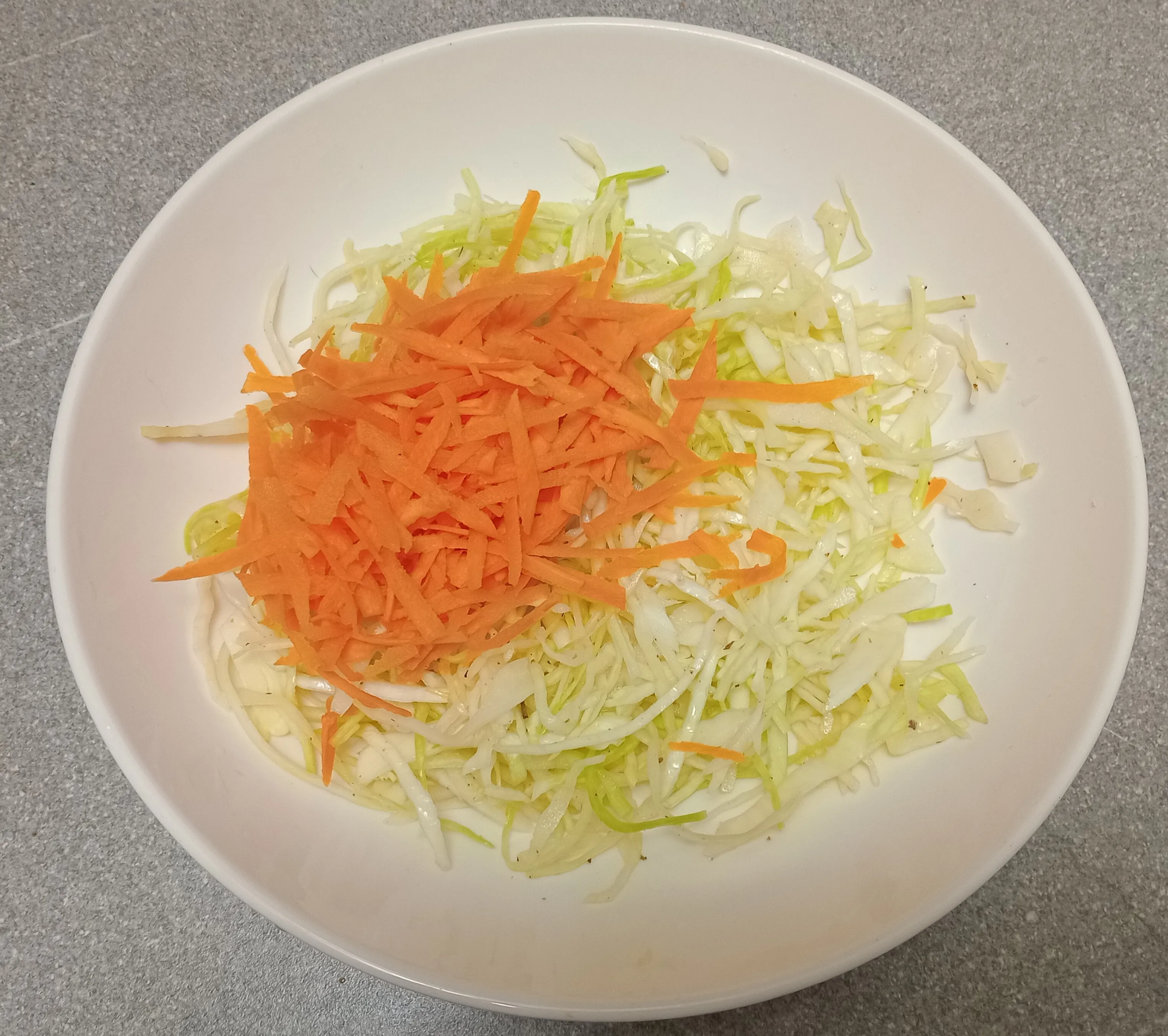 Помните капусту руками и добавьте натёртую на тёрке морковь.