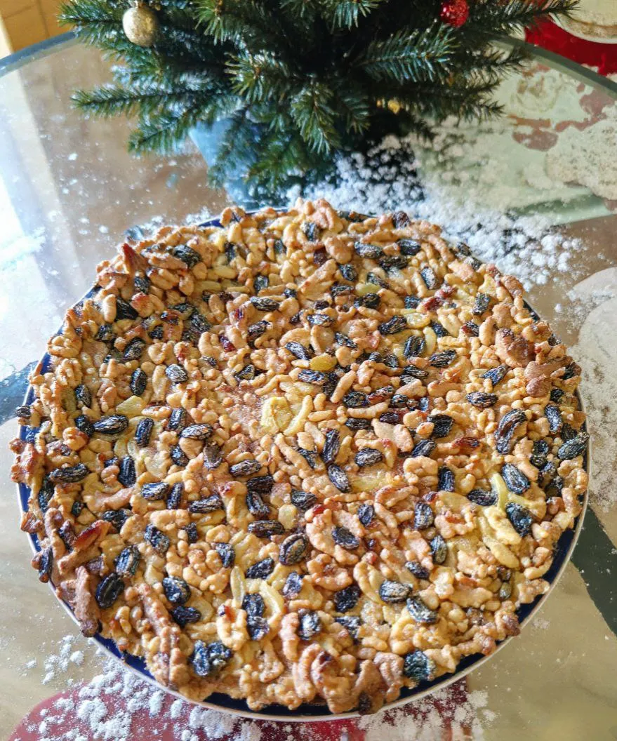 Основные ингредиенты торта: изюм и грецкие орехи. Торт с плотной текстурой, но теста минимум. Вкус насыщенный с ореховыми и фруктовыми нотами. «Мазурка» — семейный рецепт автора: без этого десерта не обходится ни один праздник!