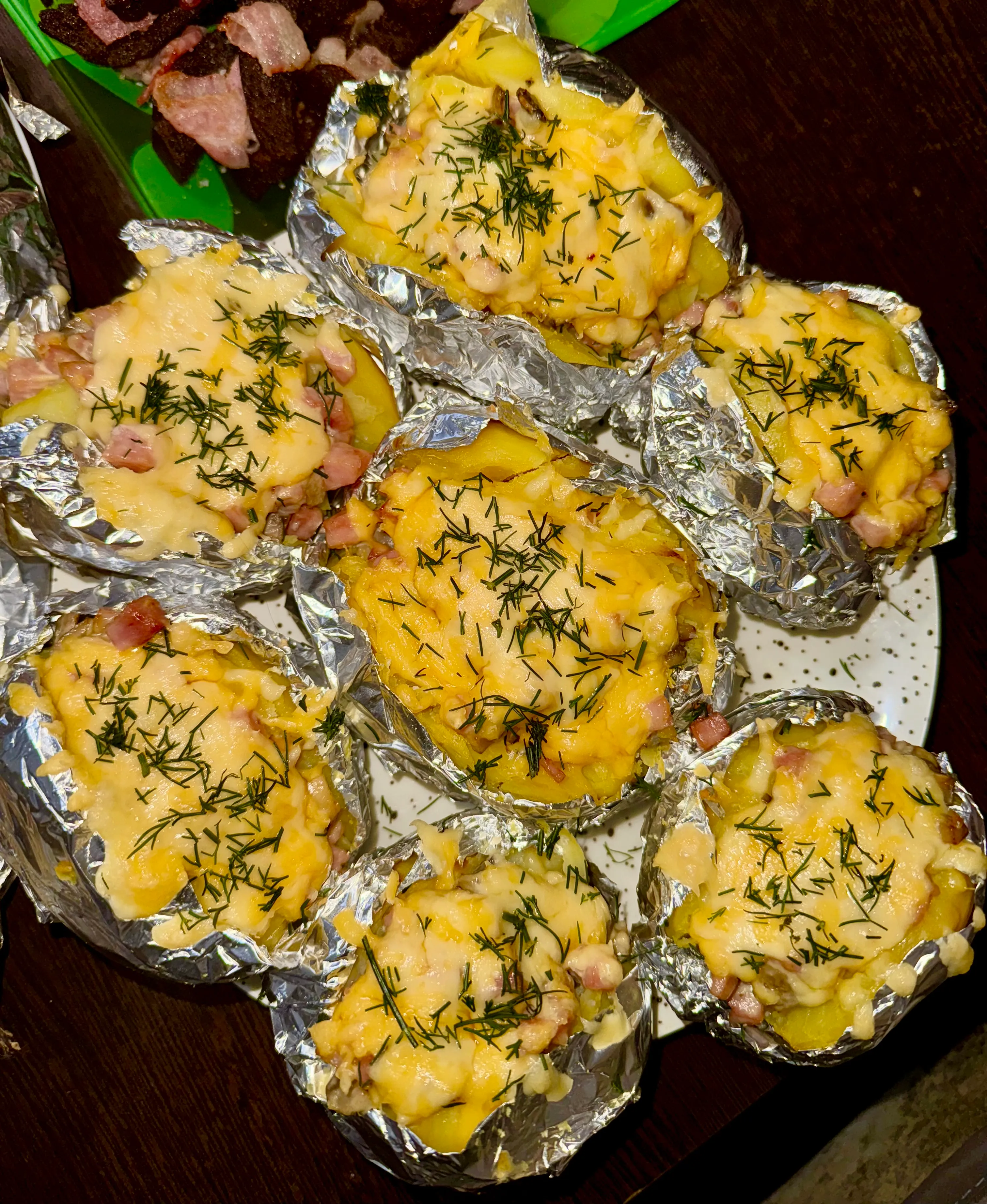 Помойте и очистите картофель. Фольгу смажьте растительным маслом и заверните каждую картофелину. Отправьте в разогретую до 200°C духовку до полной готовности.