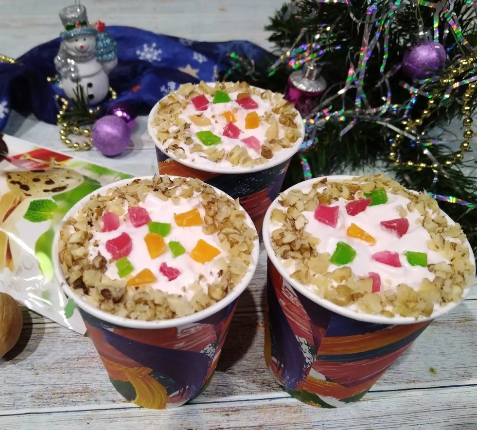 Бисквитные мини-тортики с творожной прослойкой в стаканчиках — это удобно и красиво. И конечно же, вкусно! Любители сладкого точно будут довольны в Новый год.