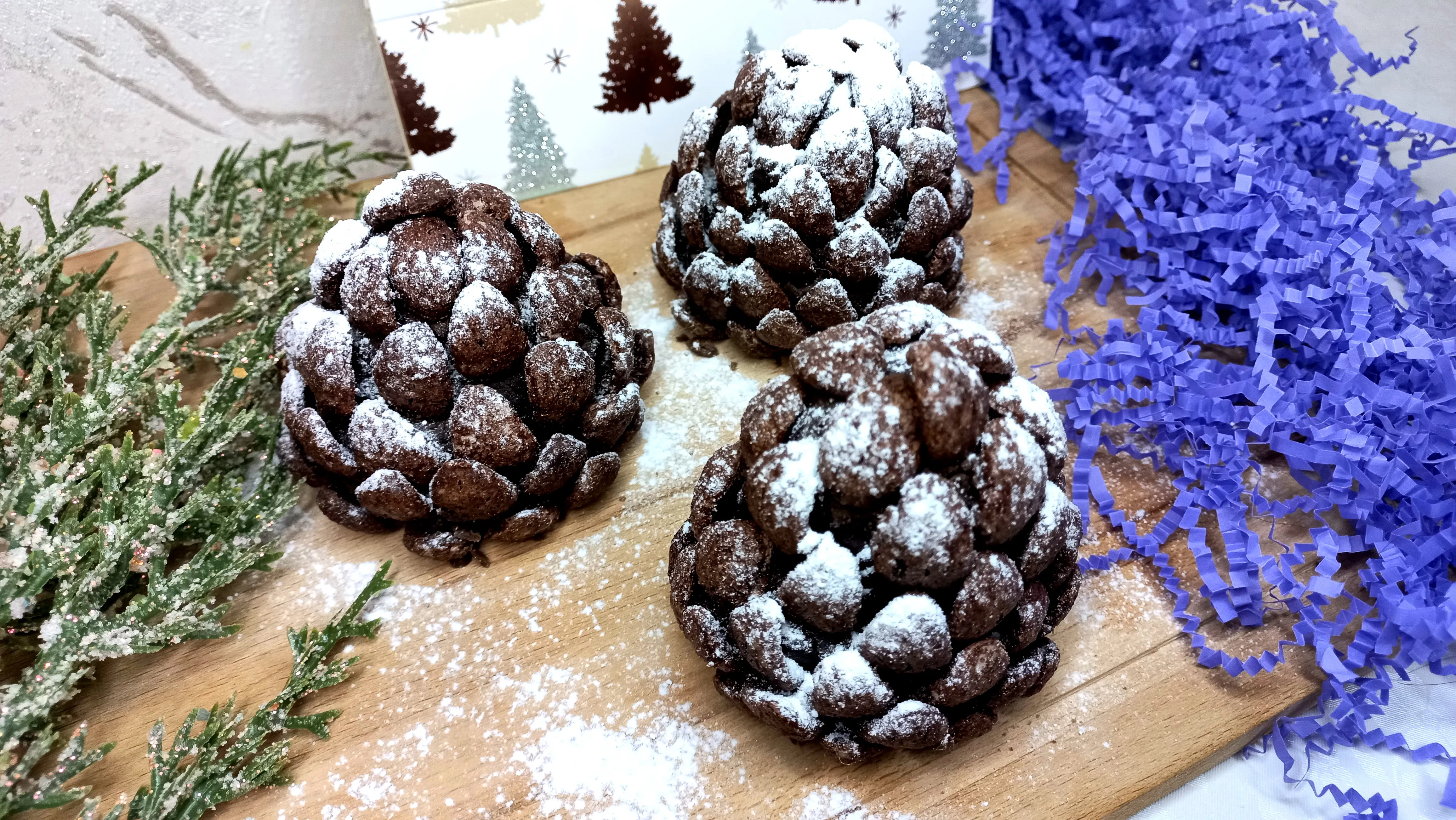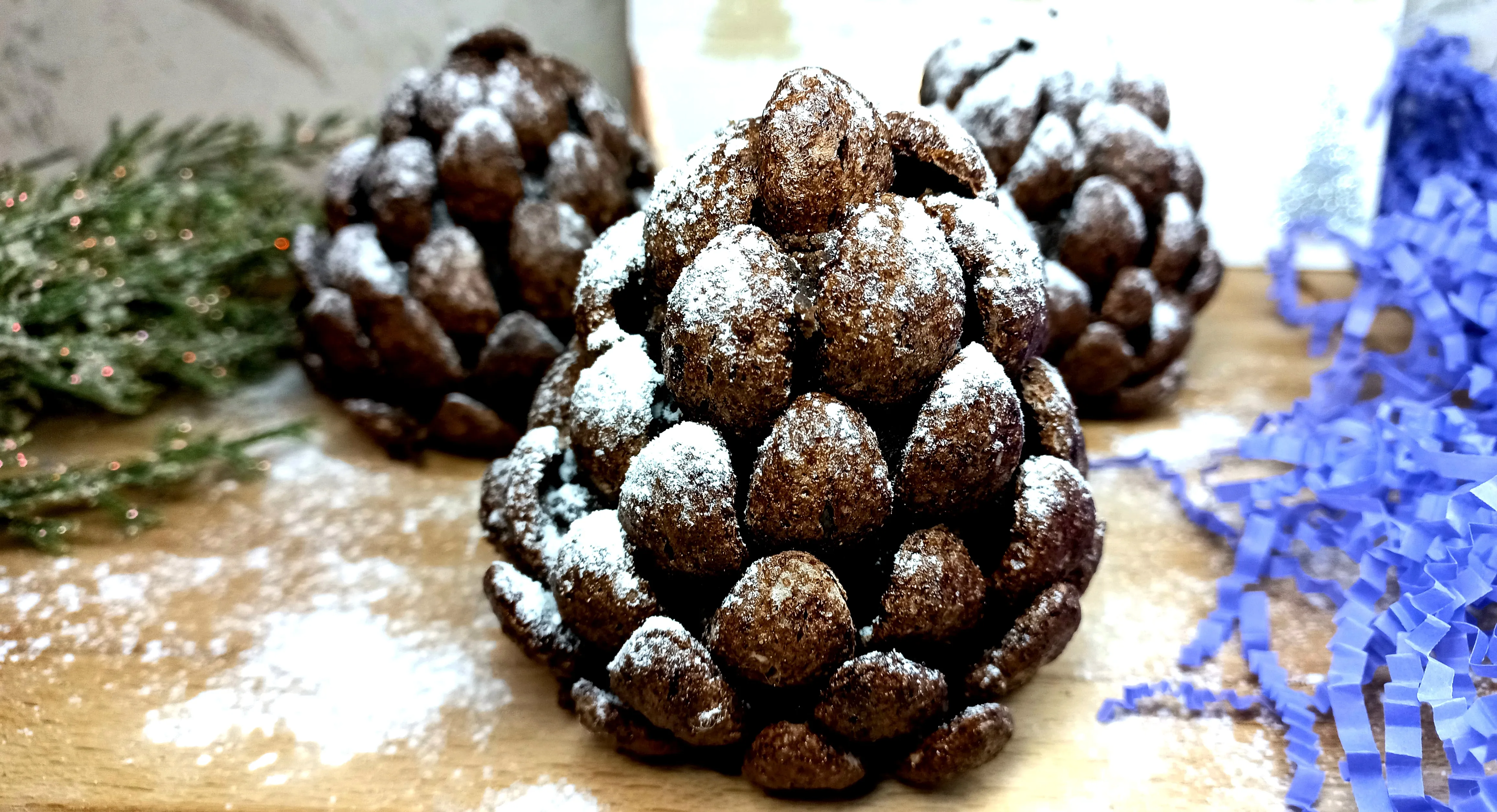 Десерт украшает праздничный стол и создаёт новогоднее настроение. «Шишки» готовятся быстро и без выпечки. Нужно всего три ингредиента, десерт получается очень похож на настоящие шишки.
