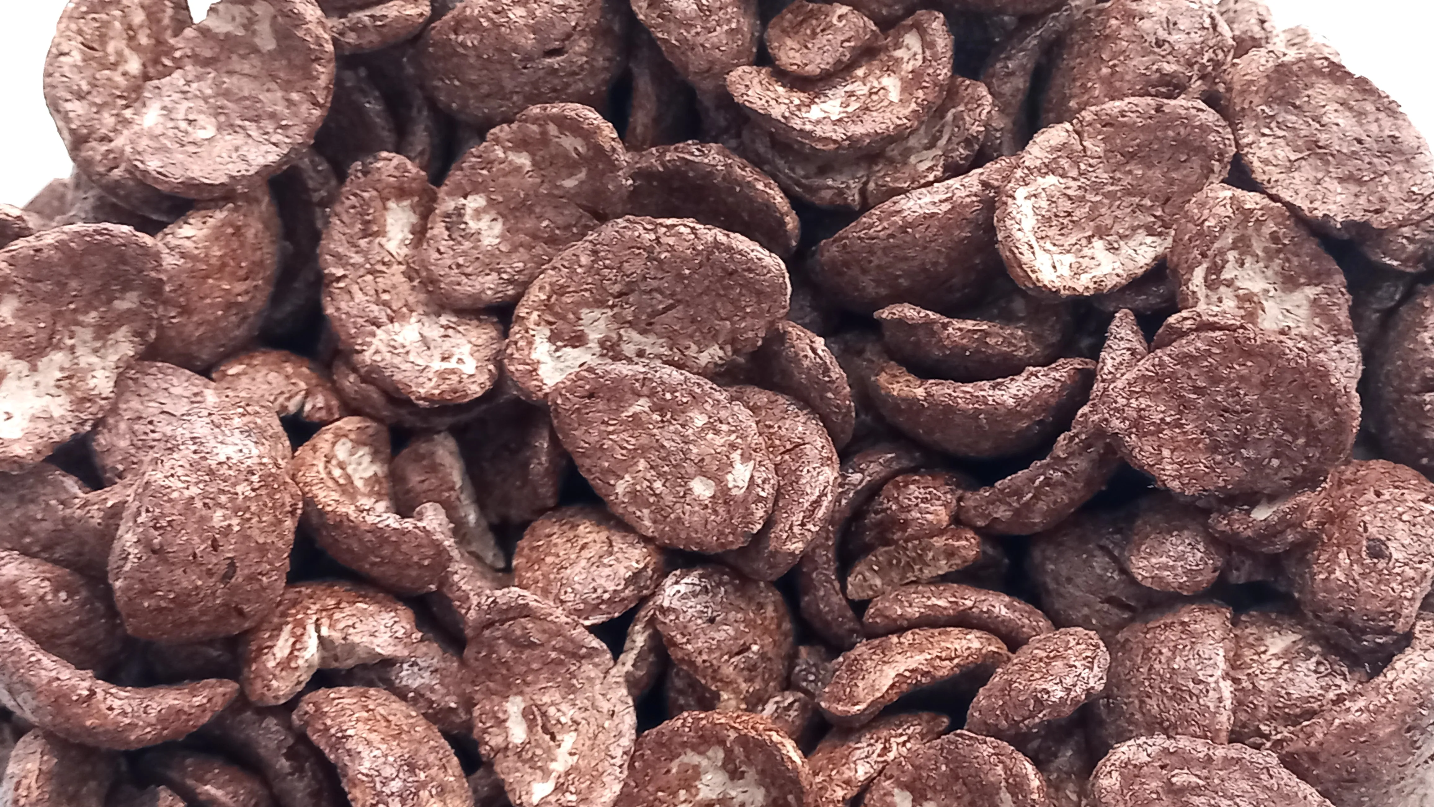 Разделите готовое тесто на порции и руками сформируйте конусы. Возьмите шоколадные хлопья для завтрака в форме чешуек.