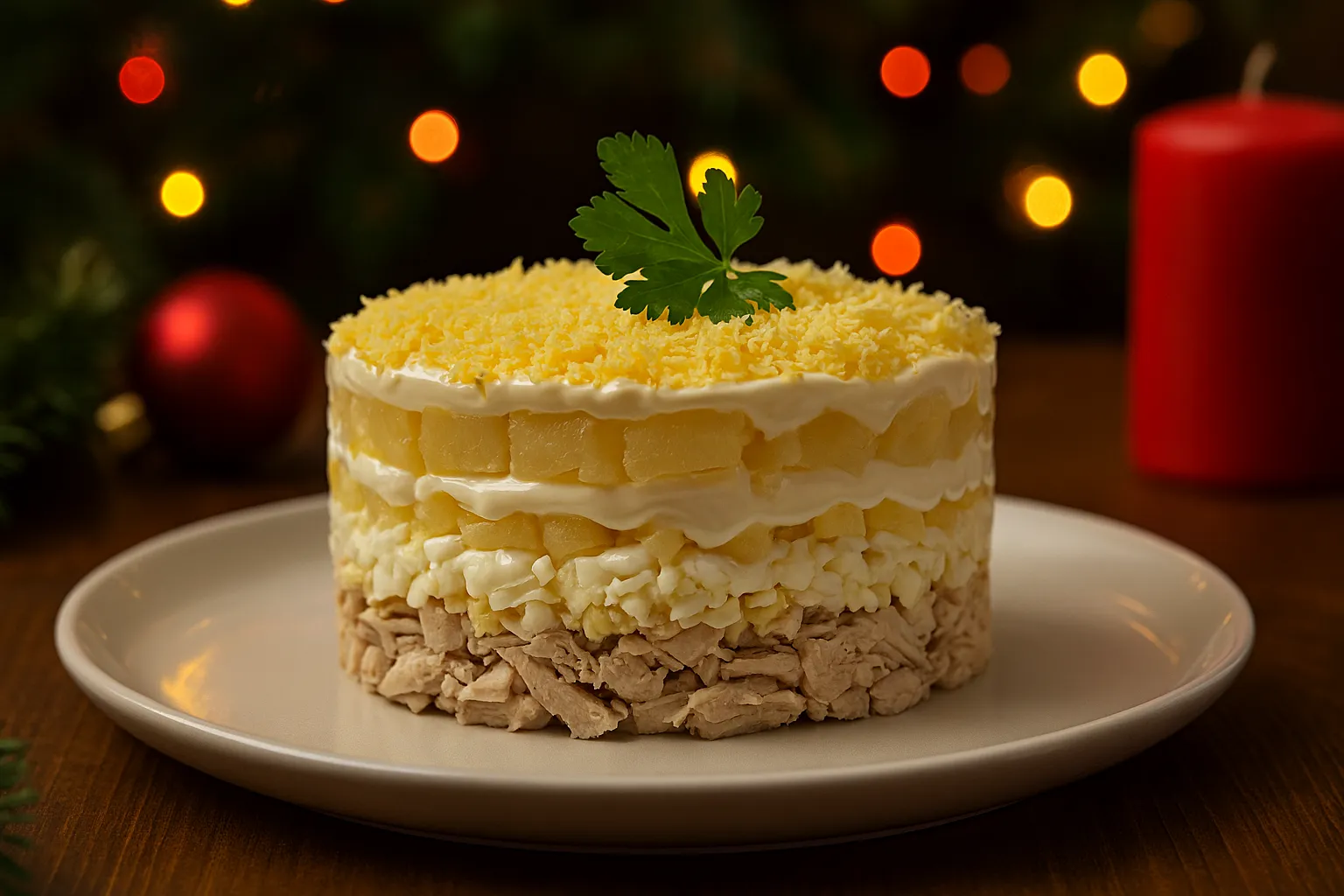 Этот рецепт салата автор увидела ещё маленьким ребёнком в 2010 году. С тех пор каждый праздник он стоит во главе праздничного стола.