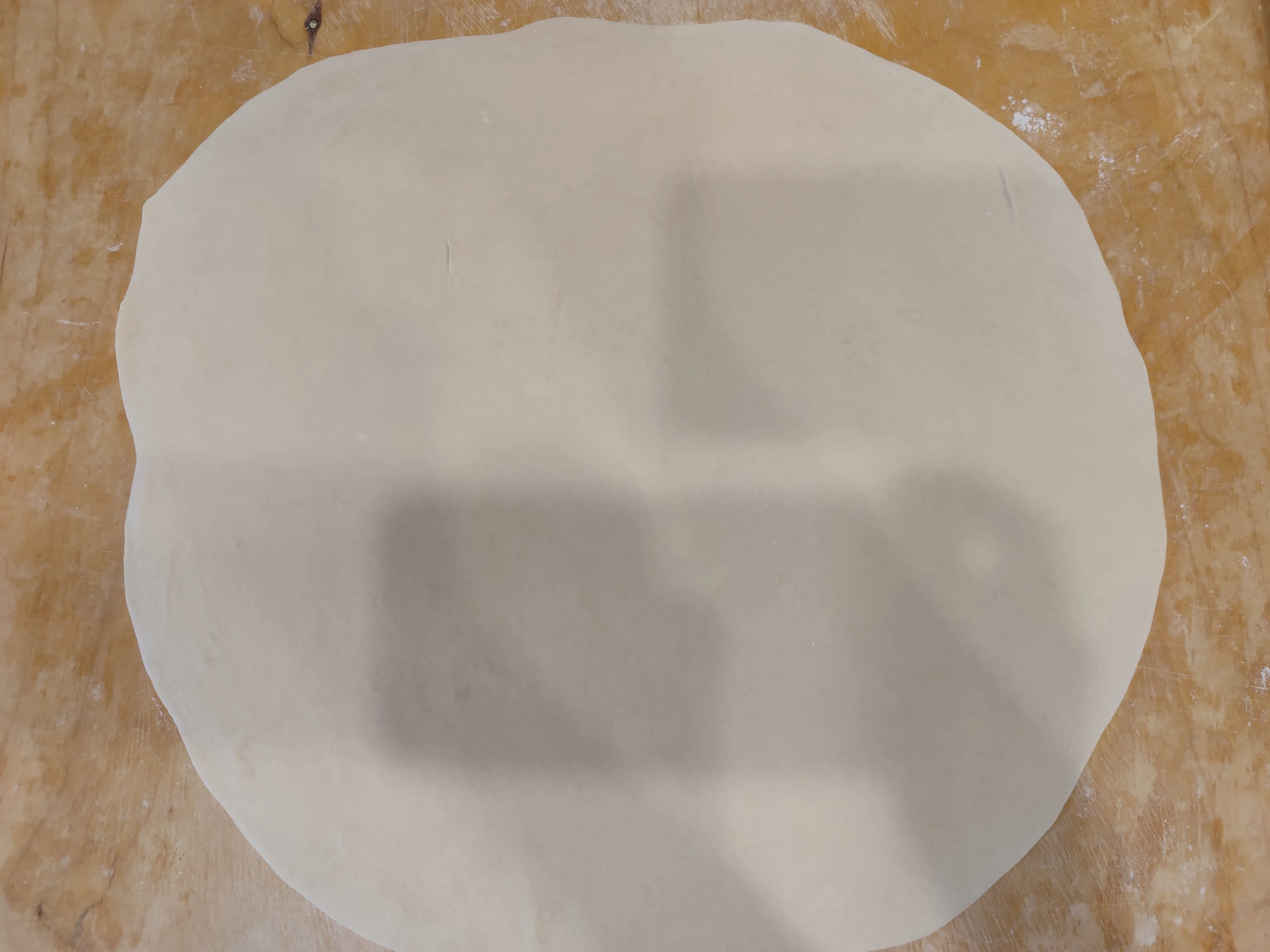 Разделите тесто на две части. Одну часть раскатайте в тонкий круг.