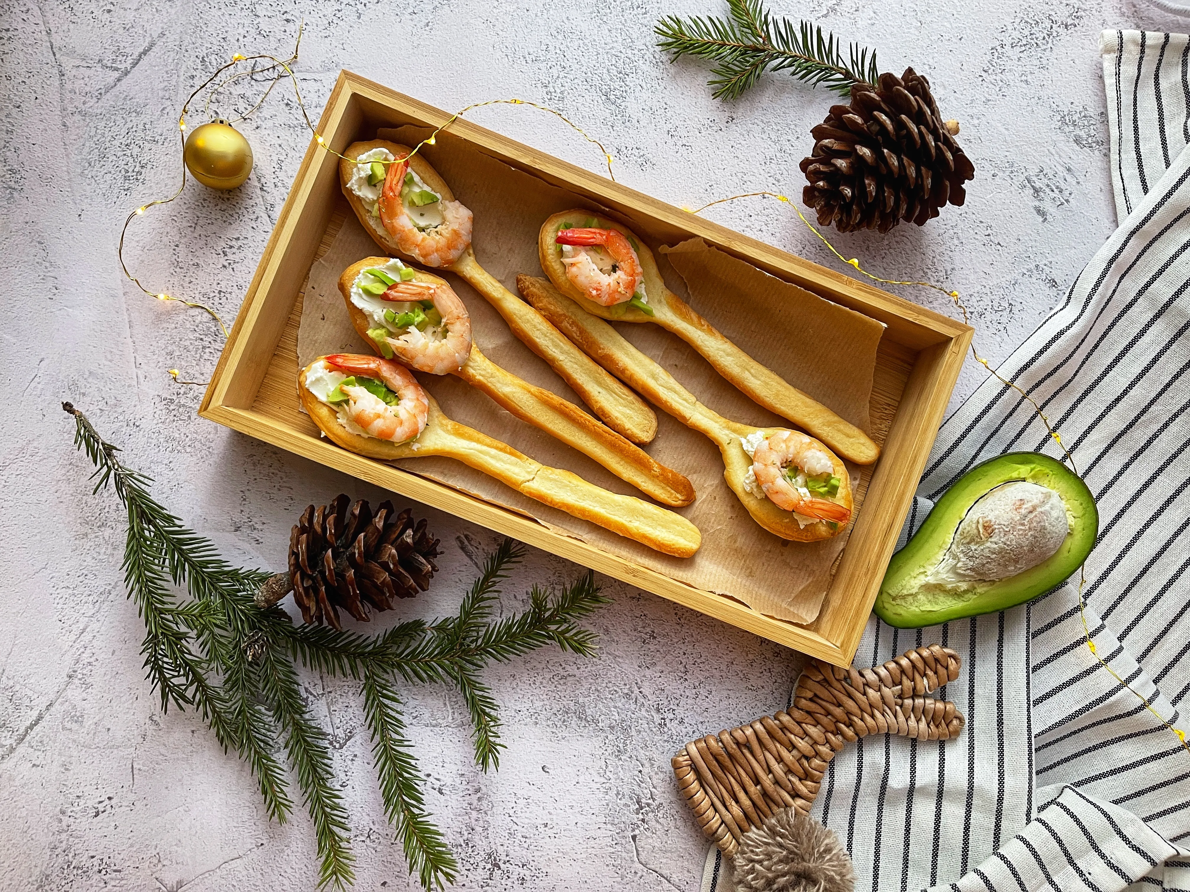 Иногда хочется удивить гостей во время праздника, подойдёт этот рецепт необычных тарталеток в виде ложек с креветками, творожным сыром и авокадо. Готовьте на новогодний стол. Гости будут точно в восторге!