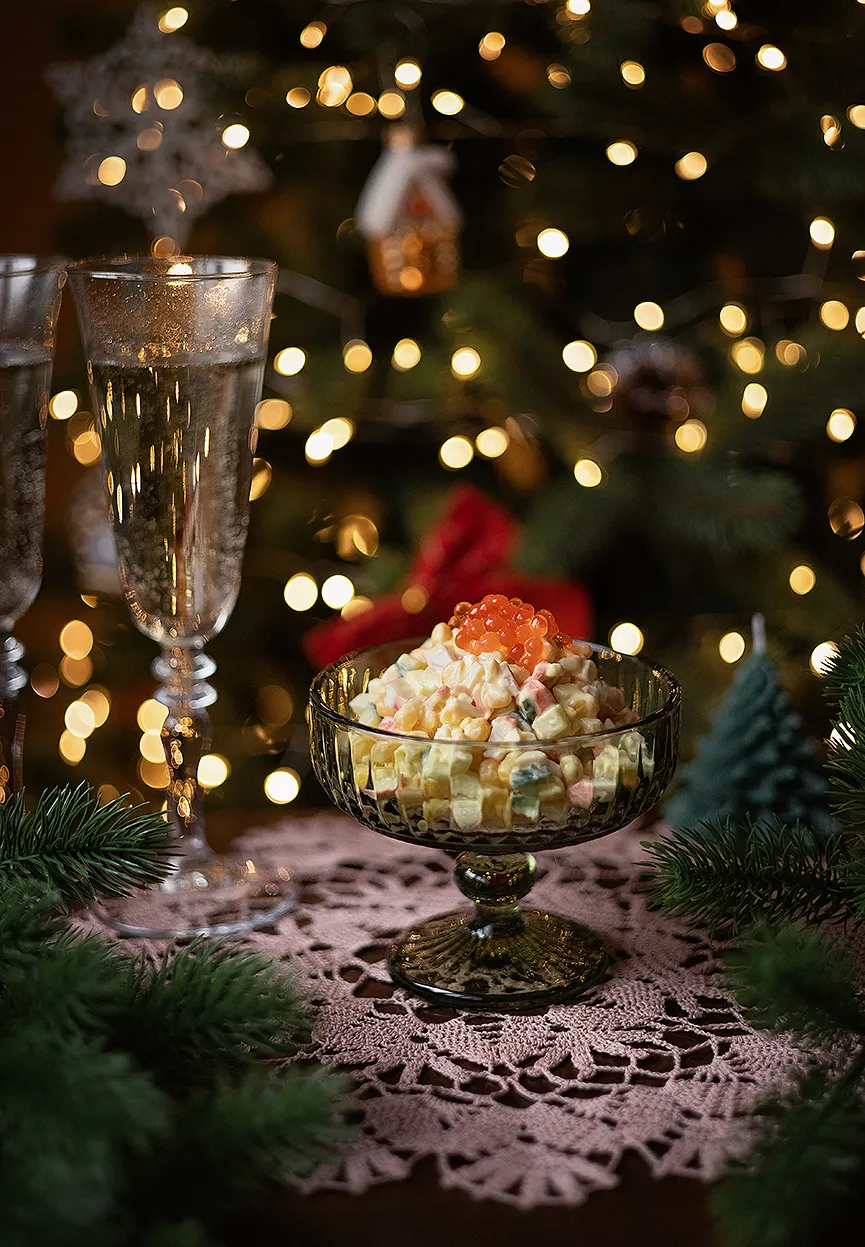 Простой, но очень вкусный и популярный новогодний салат — салат из крабовых палочек. Он стал классикой праздничного стола благодаря своему нежному вкусу, яркому виду и лёгкости приготовления. Его основные ингредиенты — крабовые палочки, свежие огурцы, яйца и кукуруза — прекрасно сочетаются друг с другом, создавая нежную и свежую композицию.