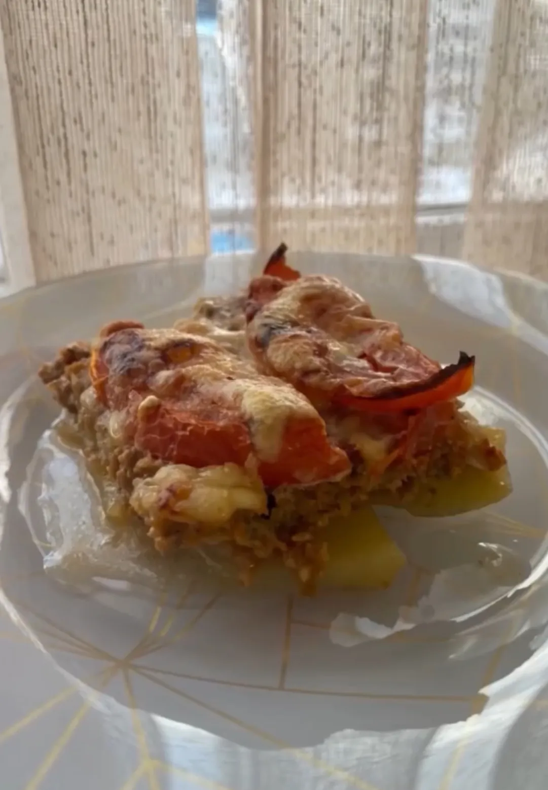 Добавьте приправы, соль и перец в фарш и разложите его на картофель, будто бы разглаживая и заполняя пустое пространство. Добавьте сверху помидоры, которые порезали кольцами.