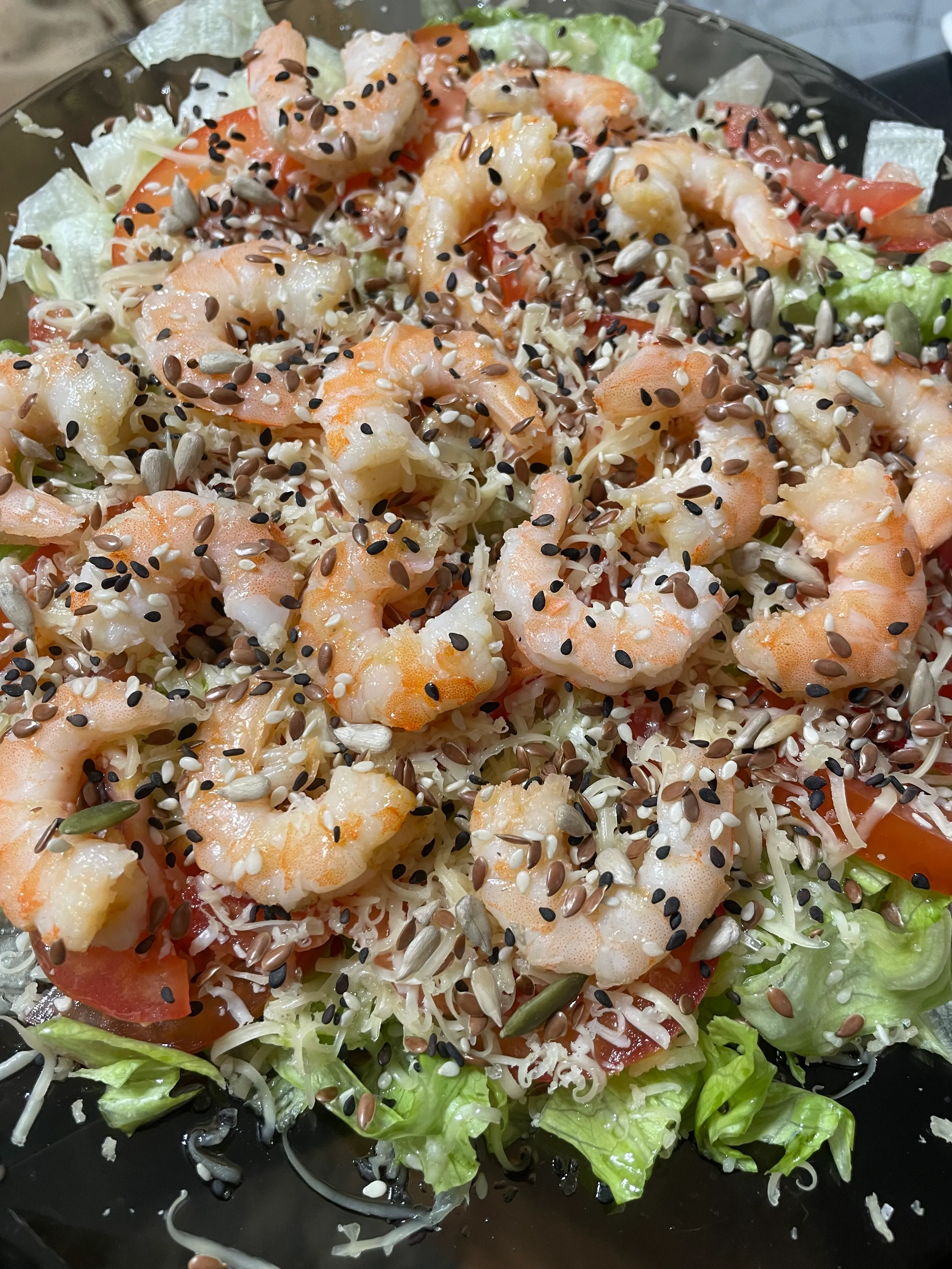 Полейте сверху соусом, если любите. Посыпьте семечками и подавайте.