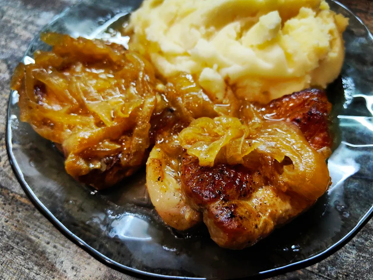 Свинину нарежьте пластинами, обжарьте с двух сторон на сливочном масле, посолите, поперчите.