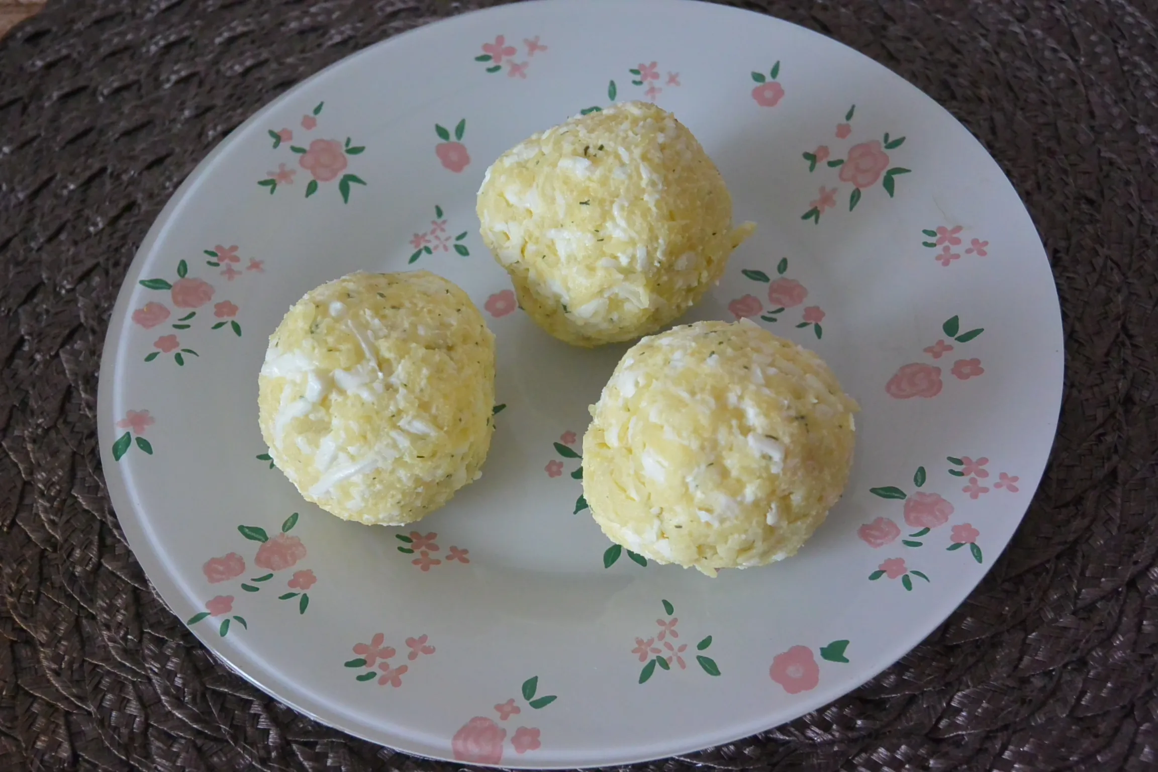 Натрите на тёрке варёные яйца, сыр и варёную морковь. Куриную грудку нарежьте на мелкие кусочки. Смешайте яйца, натёртый сыр, куриную грудку с майонезом. Сформируйте шарики.
