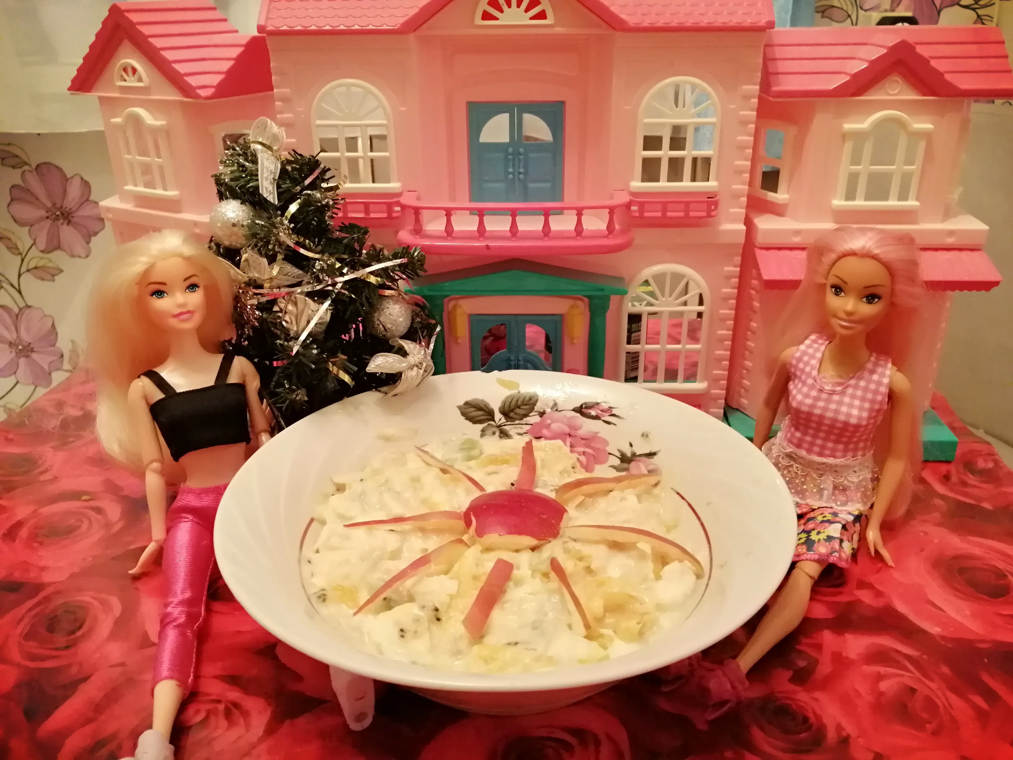 Этот салат очень любят дети. Съедают всё до крошки. Подойдёт и для взрослых, которые на диете или не хотят нагружать желудок в новогоднюю ночь.