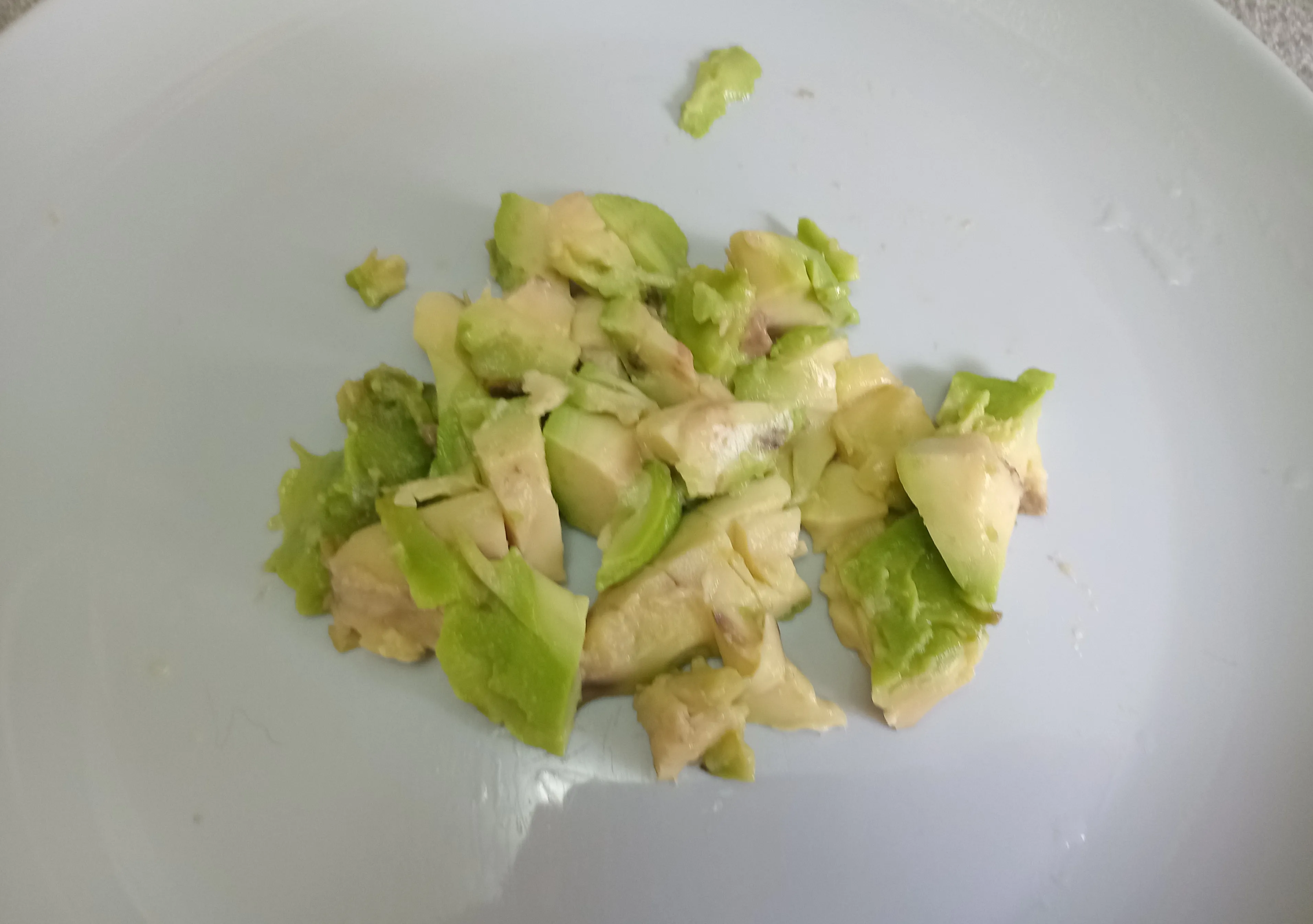 Помойте овощи и зелень. Авокадо разрежьте пополам, вытащите кость и нарежьте мякоть кубиками.