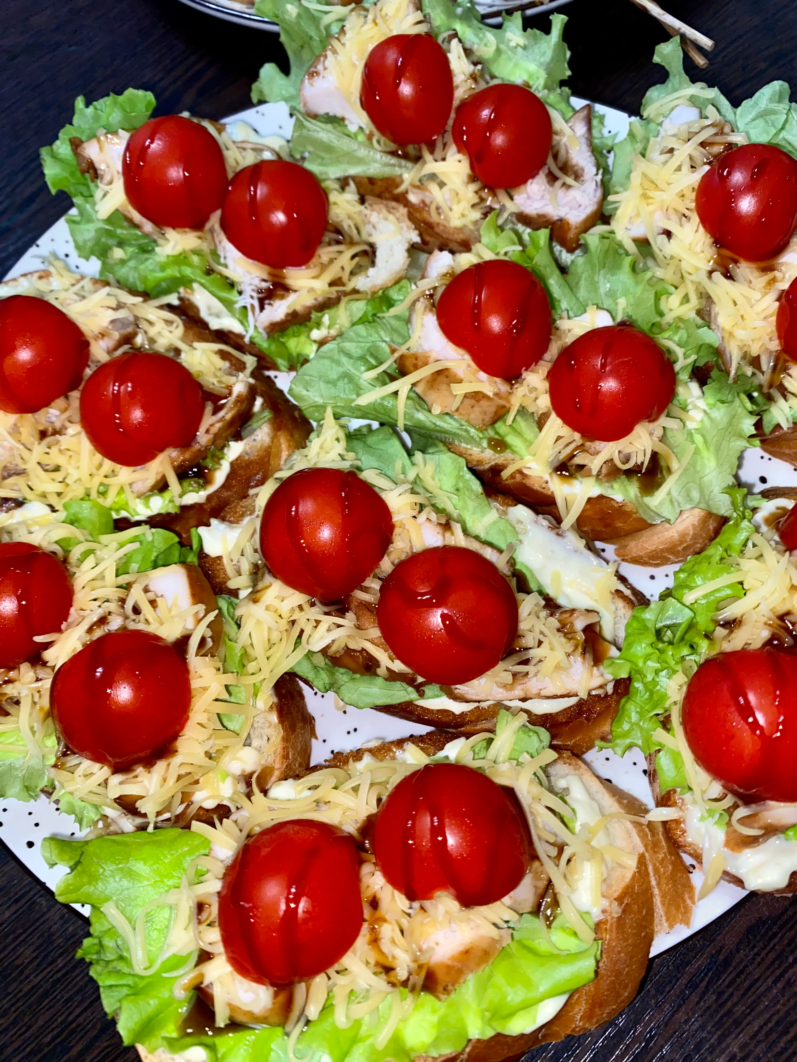 Салат Айсберг 1 шт.Запеченная куриная грудка 1 шт.Сыр Эдам по вкусуСыр твердый по вкусуТомат черри по вкусуРЕЦЕПТ ПРИГОТОВЛЕНИЯ