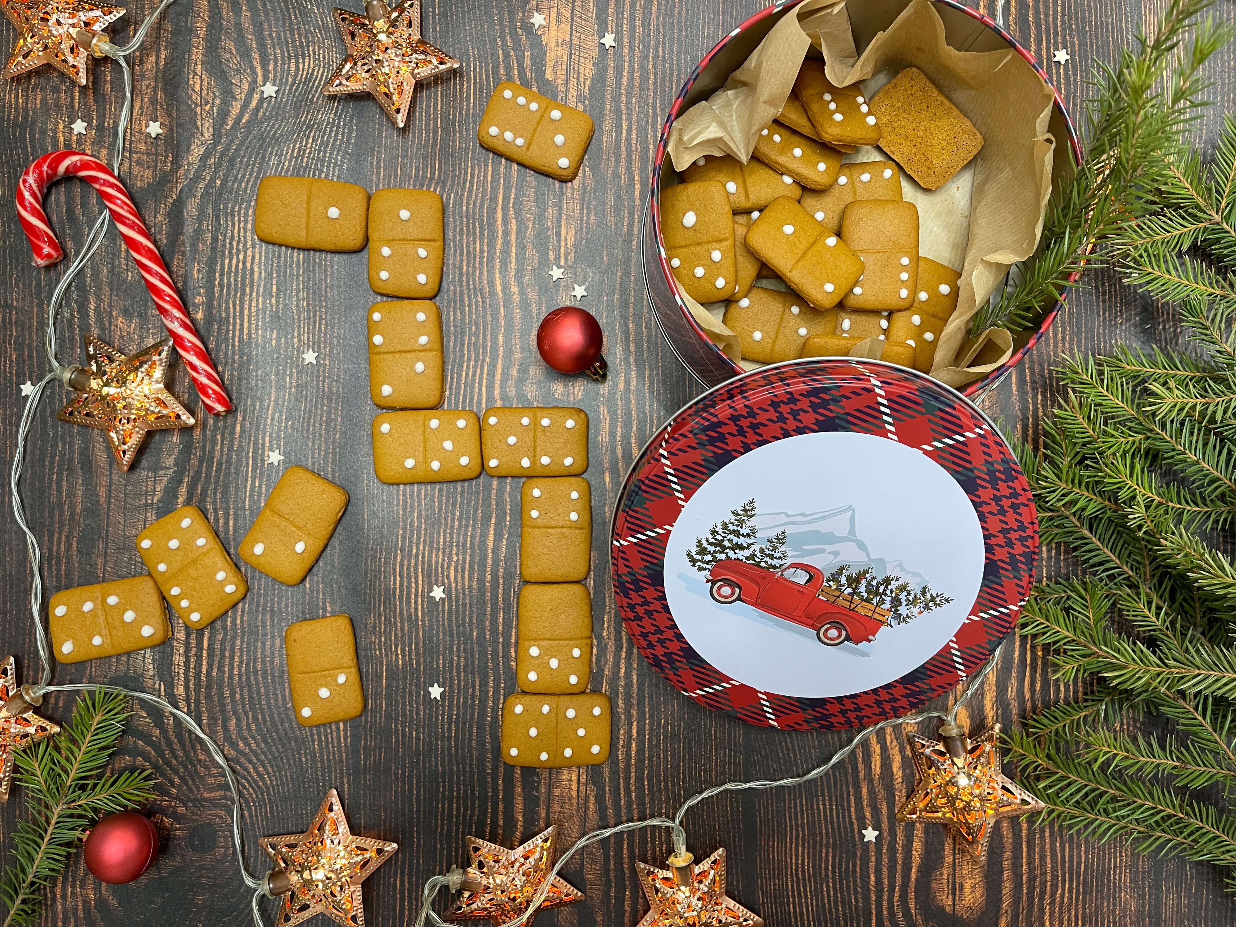 В новогодние праздники очень хочется, как можно больше времени проводить с семьёй, играть в настольные игры, смотреть новогодние фильмы, поэтому предлагаю испечь вместе с детьми имбирное печенье в виде плашек домино, и потом вместе с ними в него поиграть и попить чай с этим печеньем. Правда же отличная идея?! Можно сыграть сразу за праздничным столом!