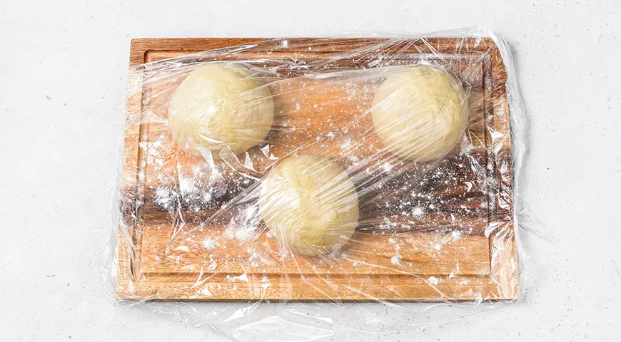 Подошедшее тесто обомните и разделите на 2-3 части, смотря какого диаметра пироги хотите получить. Скатайте из них шарики, снова накройте и дайте подойти в течение 15 минут.