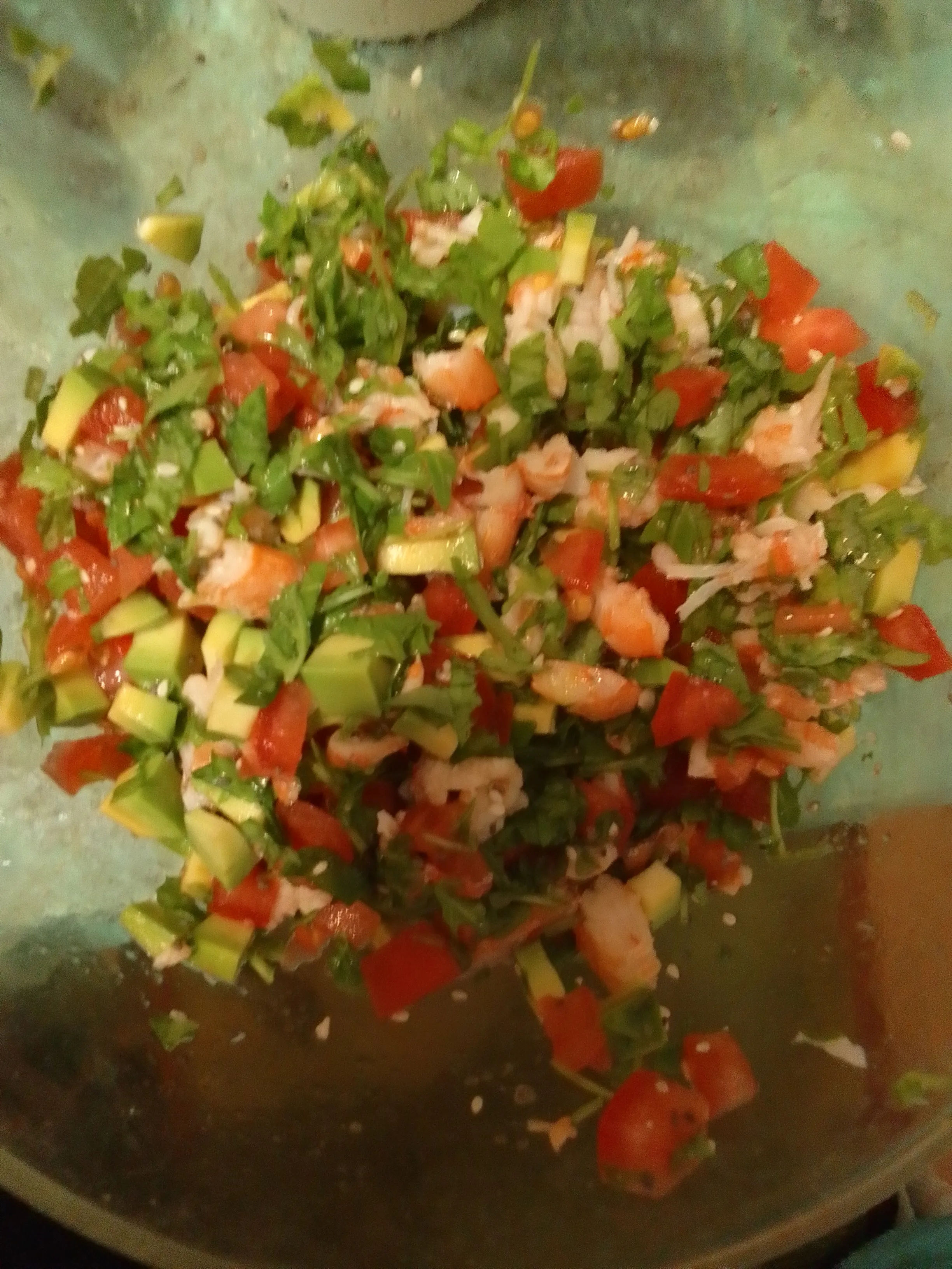 Берите мягкое авокадо и варёные замороженные креветки. Семена чиа нужно предварительно замачивать в жидкости или посыпать ими готовое блюдо, чтобы они впитали влагу.