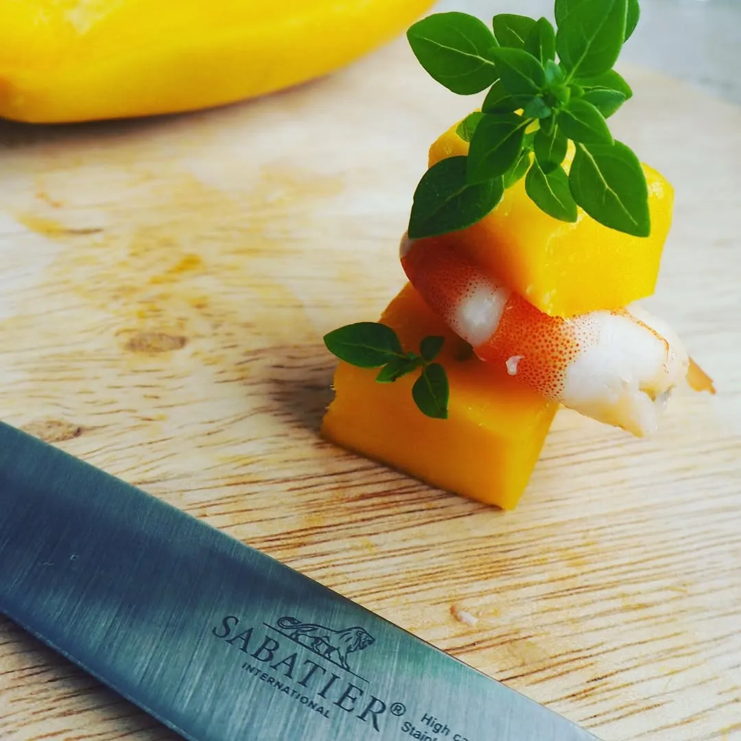 Спелое манго, креветка, базилик — это идеальное сочетание солёного моря, сладких тропиков и пряного прованского сада. Быстрая закуска для вашего праздника!