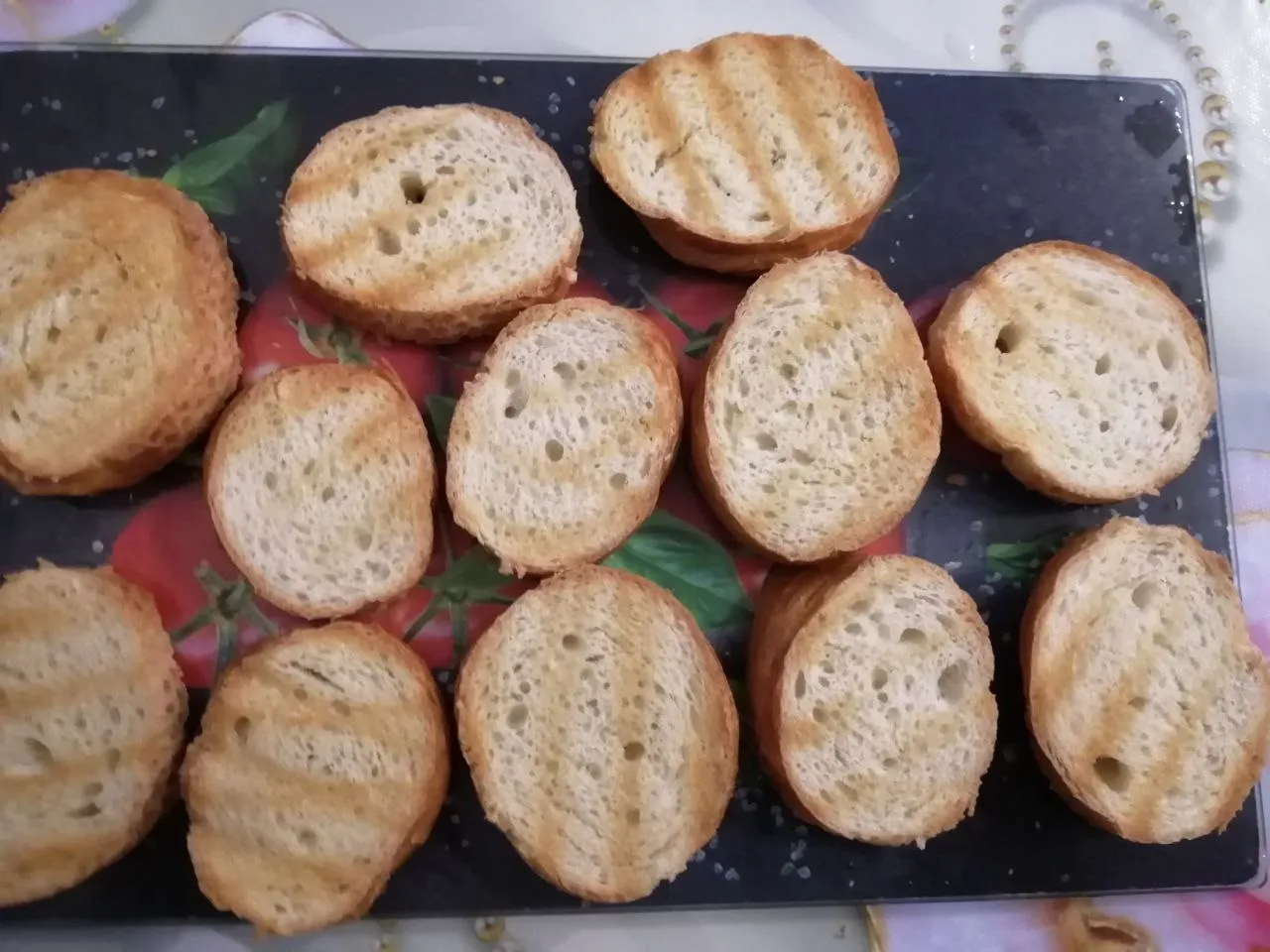 Нарежьте багет (батон) и отправьте его подсушиться в гриль или тостер (12 кусочков). В это время отварите куриное яйцо, остудите, очистите.