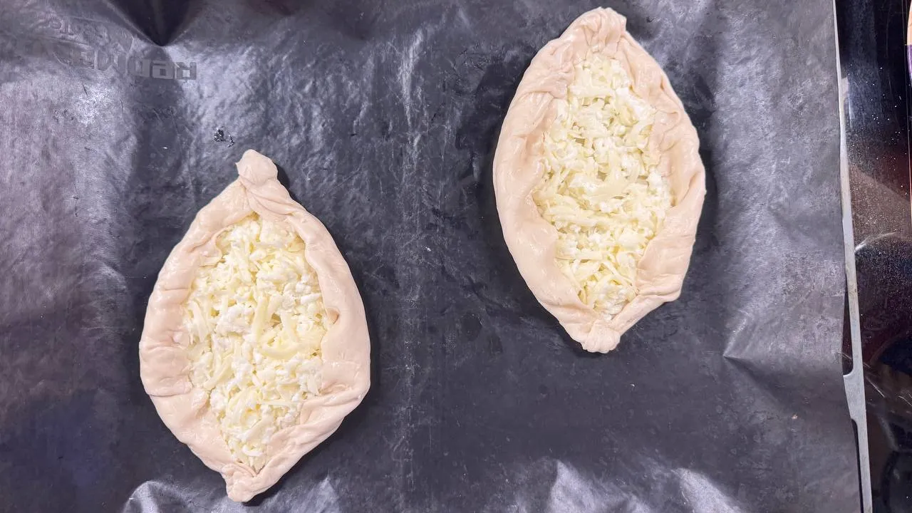 Заверните края лепёшек, придайте форму классического хачапури.
