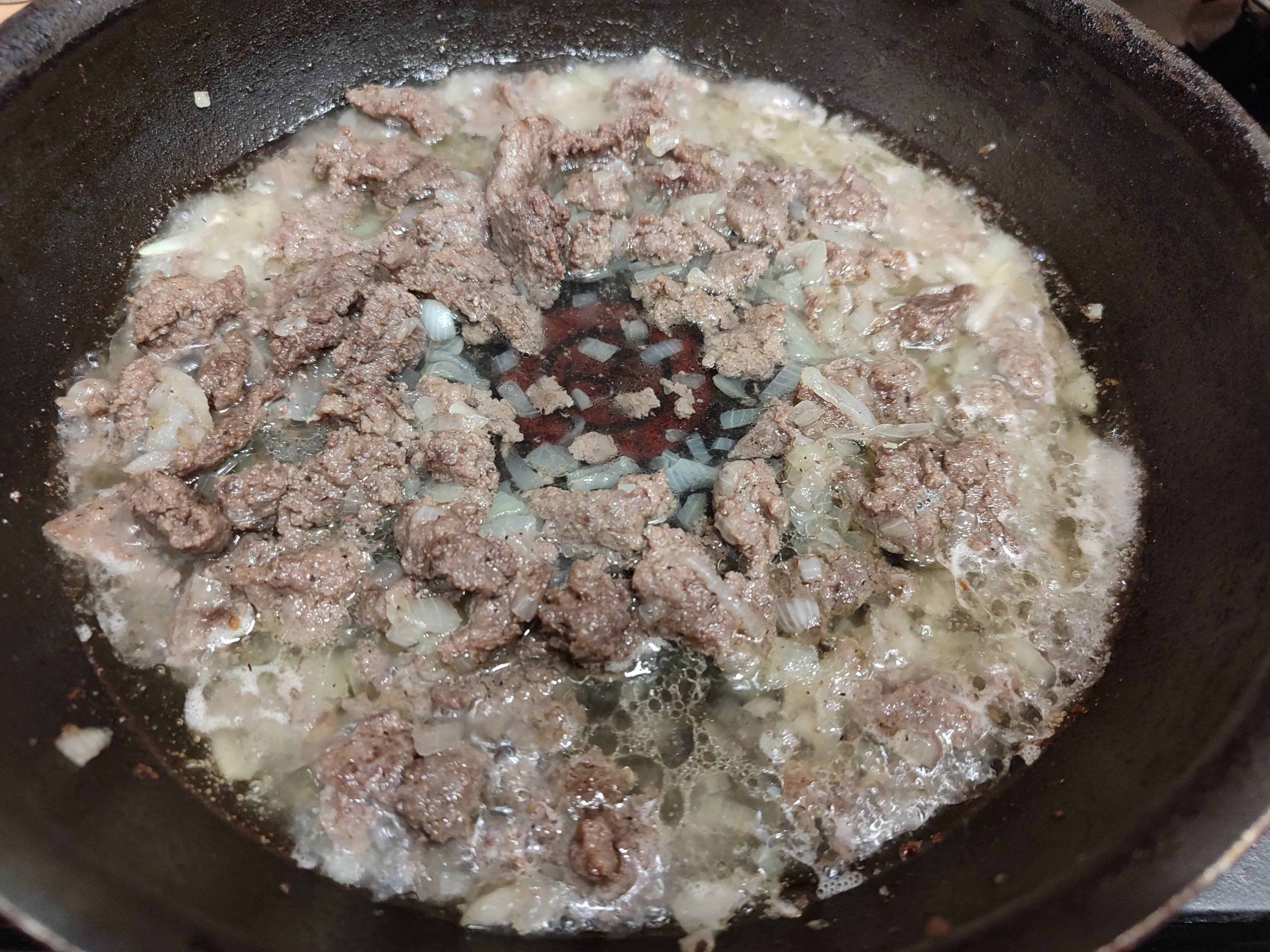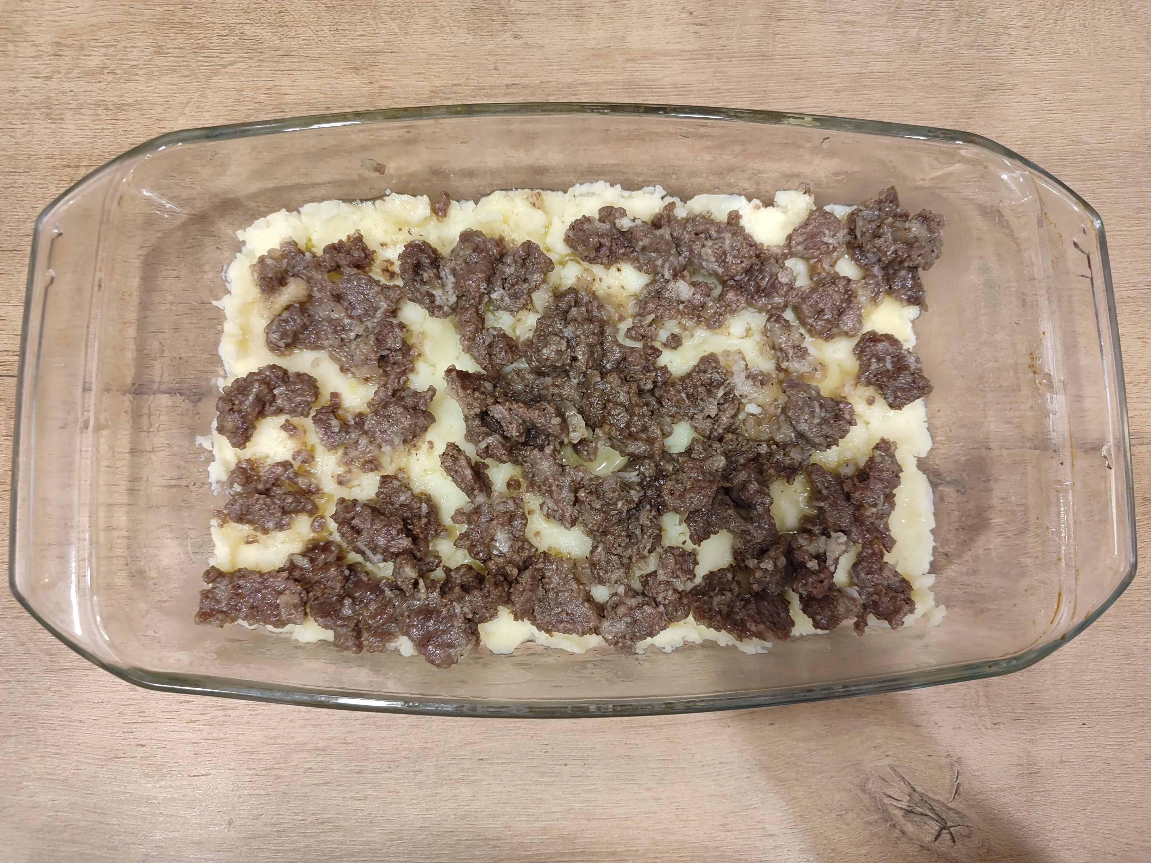 Следующим слоем выложите обжаренный говяжий фарш.