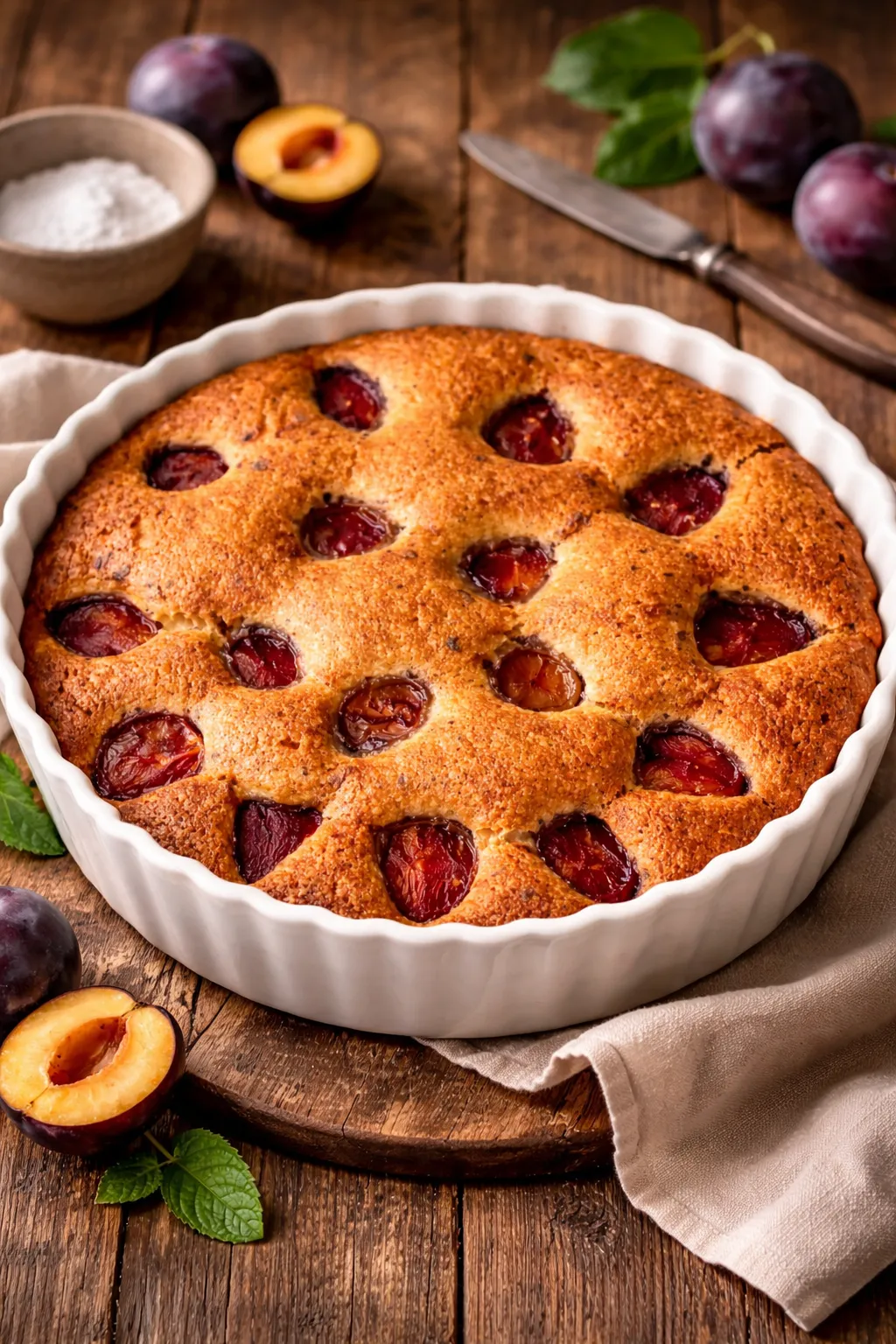 Сливы разрежьте пополам, удалите косточки и разложите на тесто кожицей вверх. Сверху слегка присыпьте сахаром и корицей.