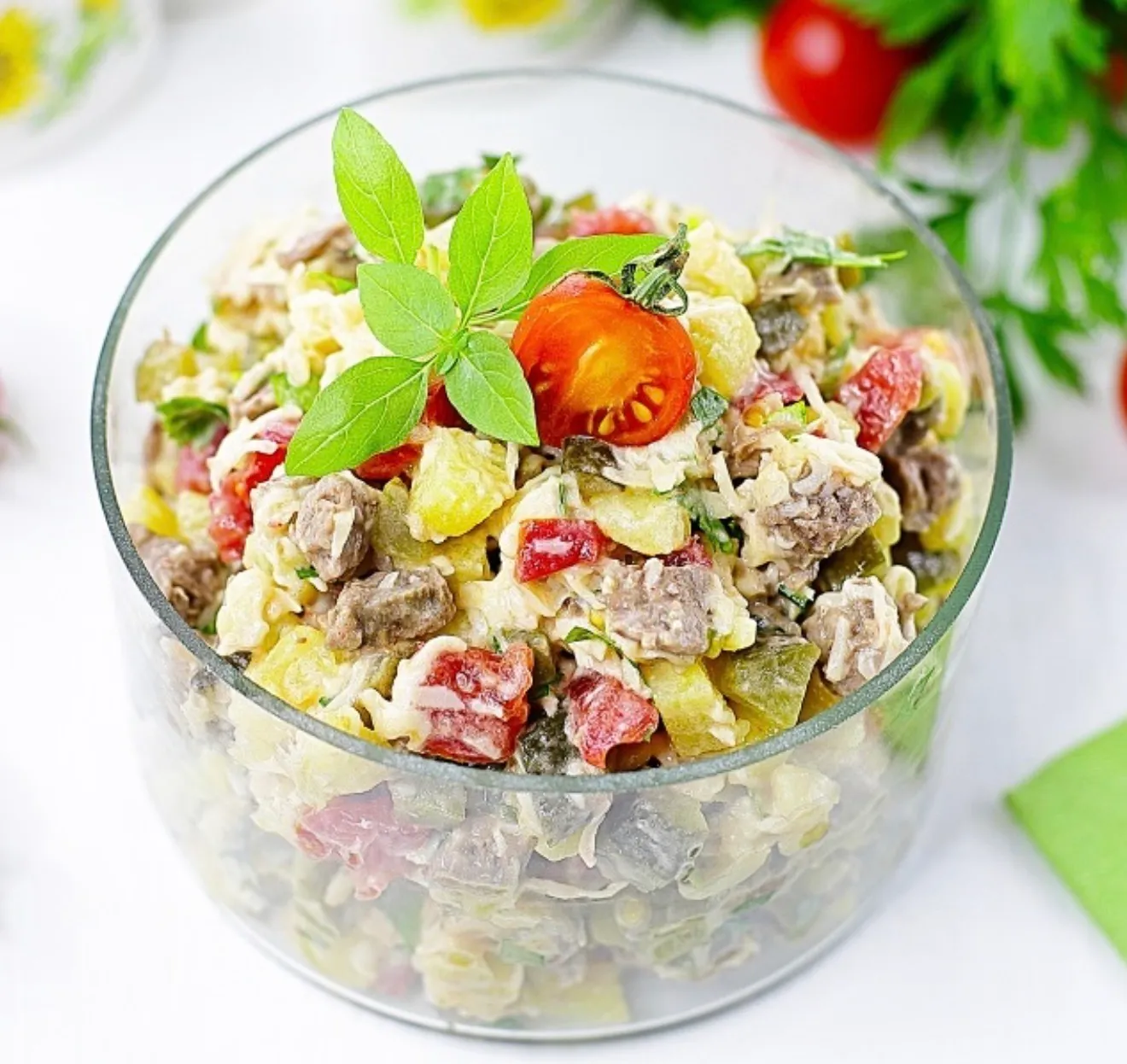 Именной фирменный салат семьи автора. Любимое семейное времяпровождение — это его готовка. По вкусовым качествам этот салат напоминает немного Оливье. Вкус готового салата напрямую зависит от выбора качественных продуктов. Идеален для праздника!