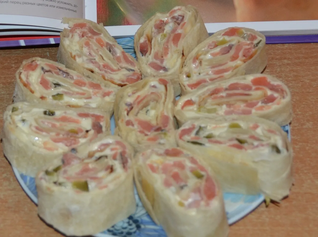 Рулеты из лаваша с красной рыбой и солёным огурчиком — это лёгкая, вкусная и быстрая закуска, которая идеально подойдёт как для праздничного стола, так и для повседневного перекуса.