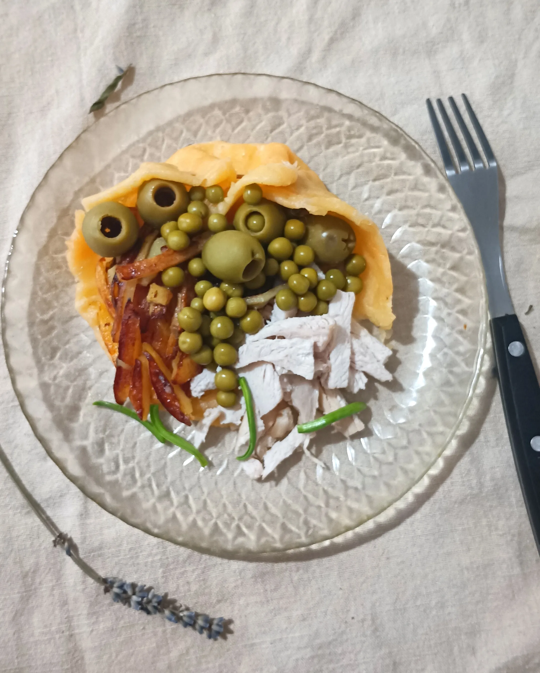 Салат может быть абсолютно любым. Подавайте его на праздничный стол в сырном лукошке. Можно положить в корзинку отварную говядину, оливки, зелёный горошек, ветчину, творожный сыр, красную рыбу, помидоры и т.д.
