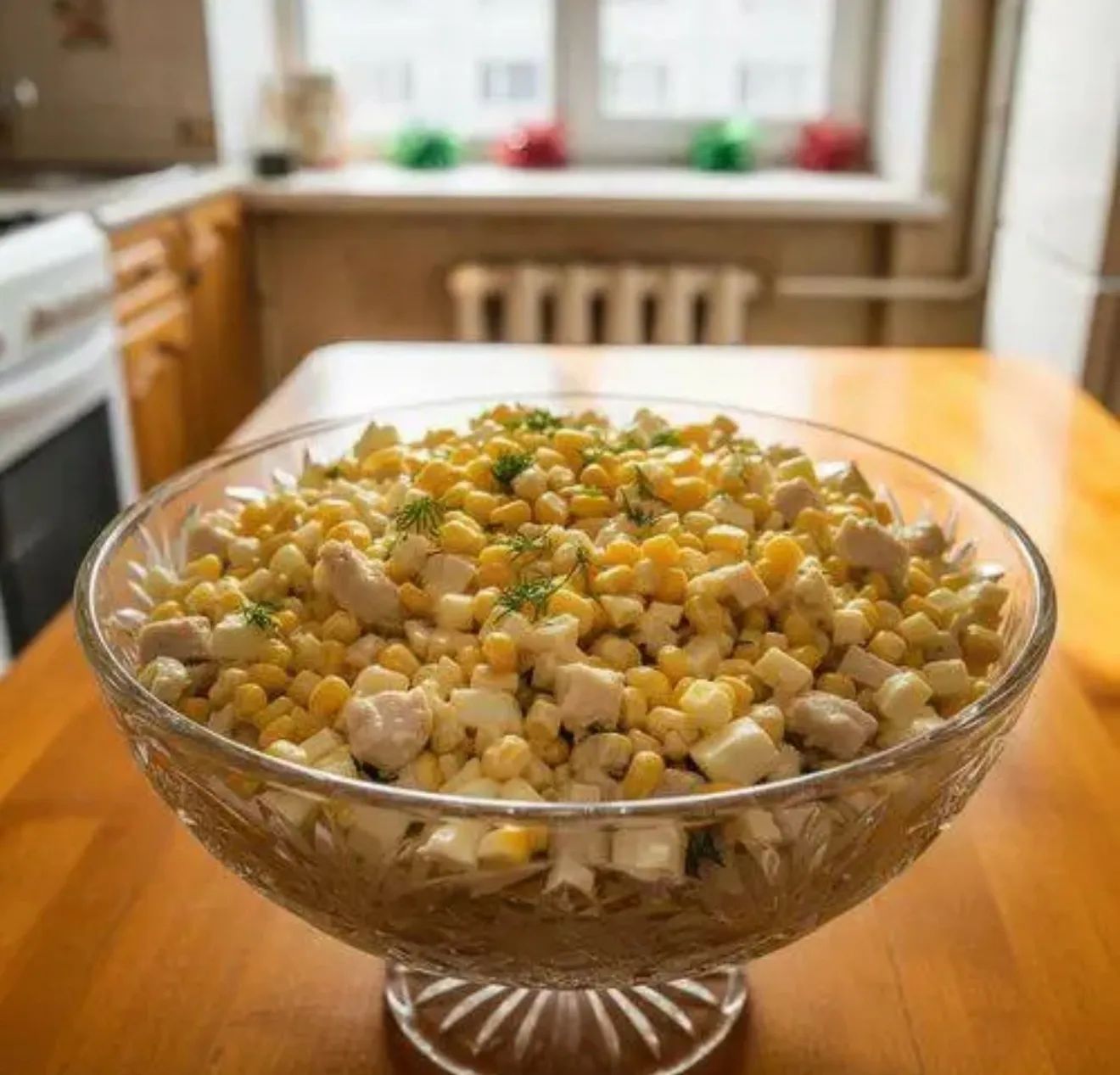 Βcё выложите в салатник и смешайте с кукурузой.