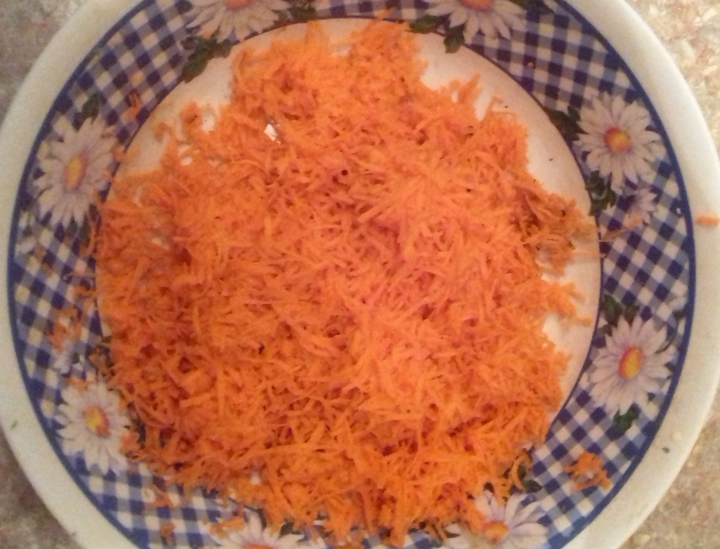 Подготовьте всё необходимое. Морковь почистите, натрите на мелкой тёрке.