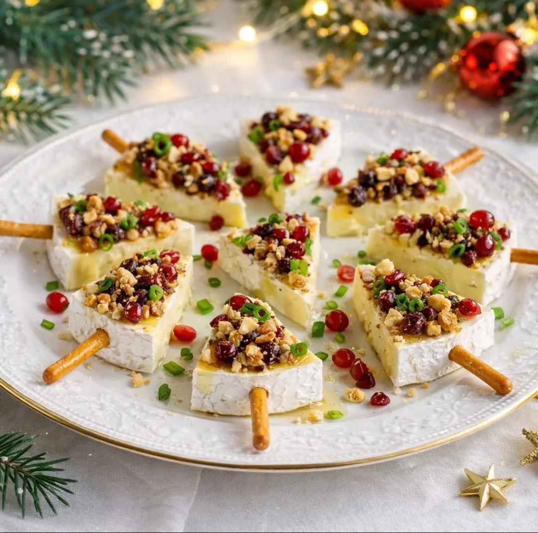 В основание треугольника из сыра воткните солёную палочку (соломку). Измельчите орехи.