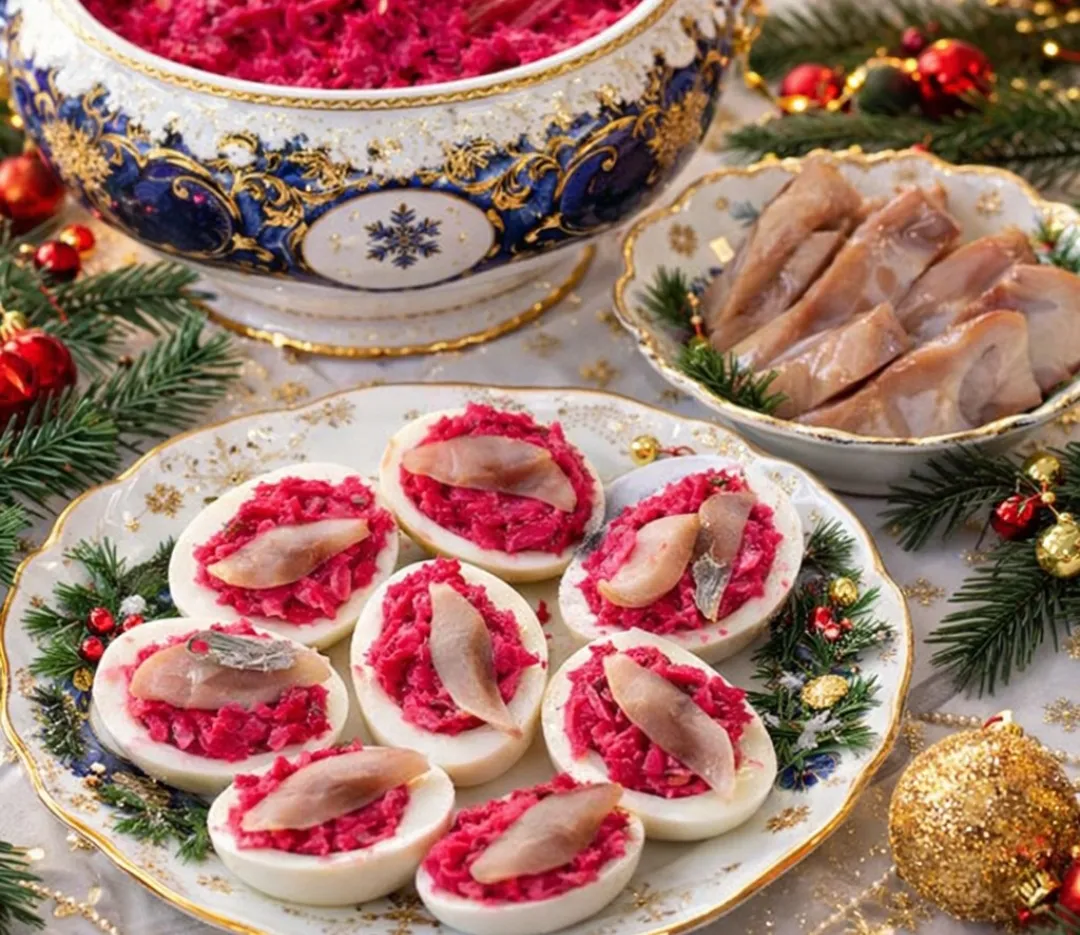 Если купить готовый салат с майонезом, кусочки сельди в майонезной заливке, время приготовления сокращается многократно. Только сварить яйца и разложить на них массу со свёклой и кусочки селёдки.