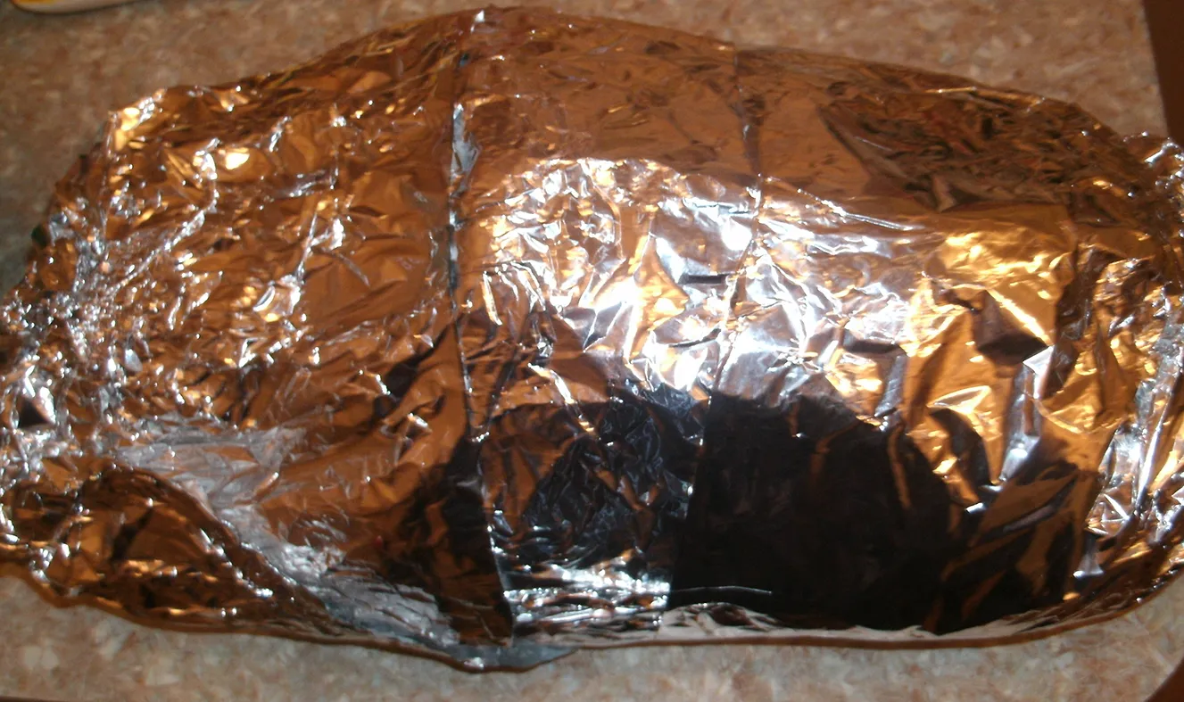 Заверните тушку гуся с начинкой в фольгу и отправьте в духовку на 2 часа при 180°C.