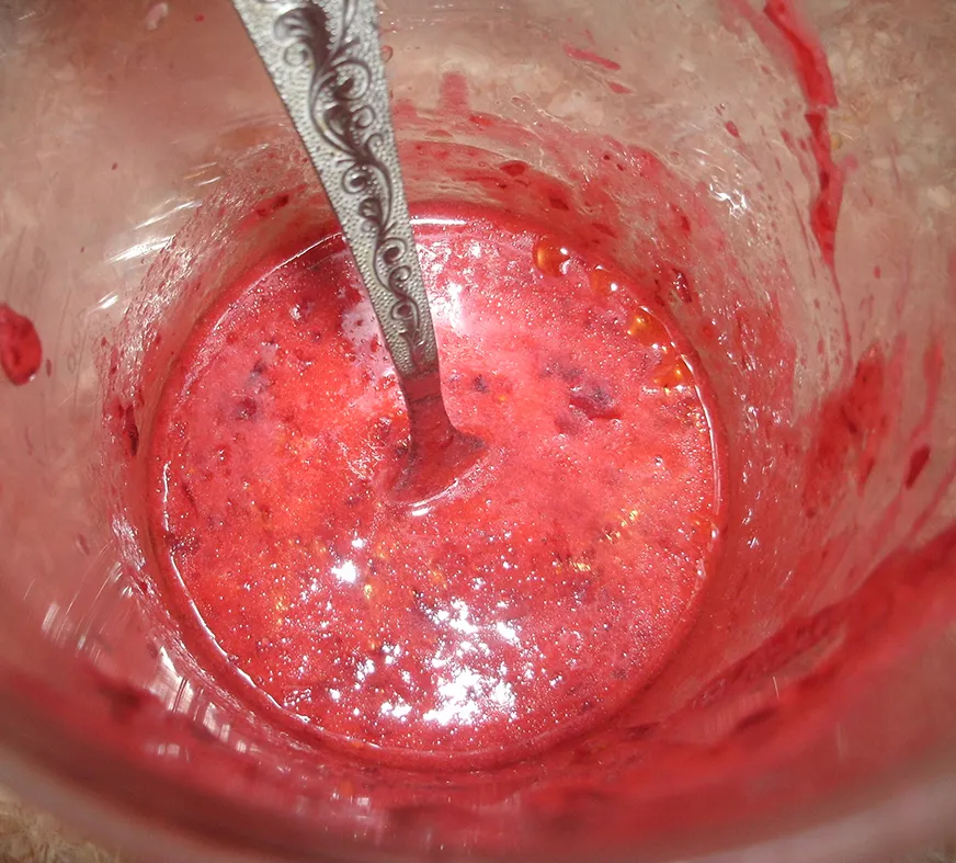 Ягоды клюквы измельчите в пюре, добавьте соль, перец, растительное масло и размешайте до однородной массы.