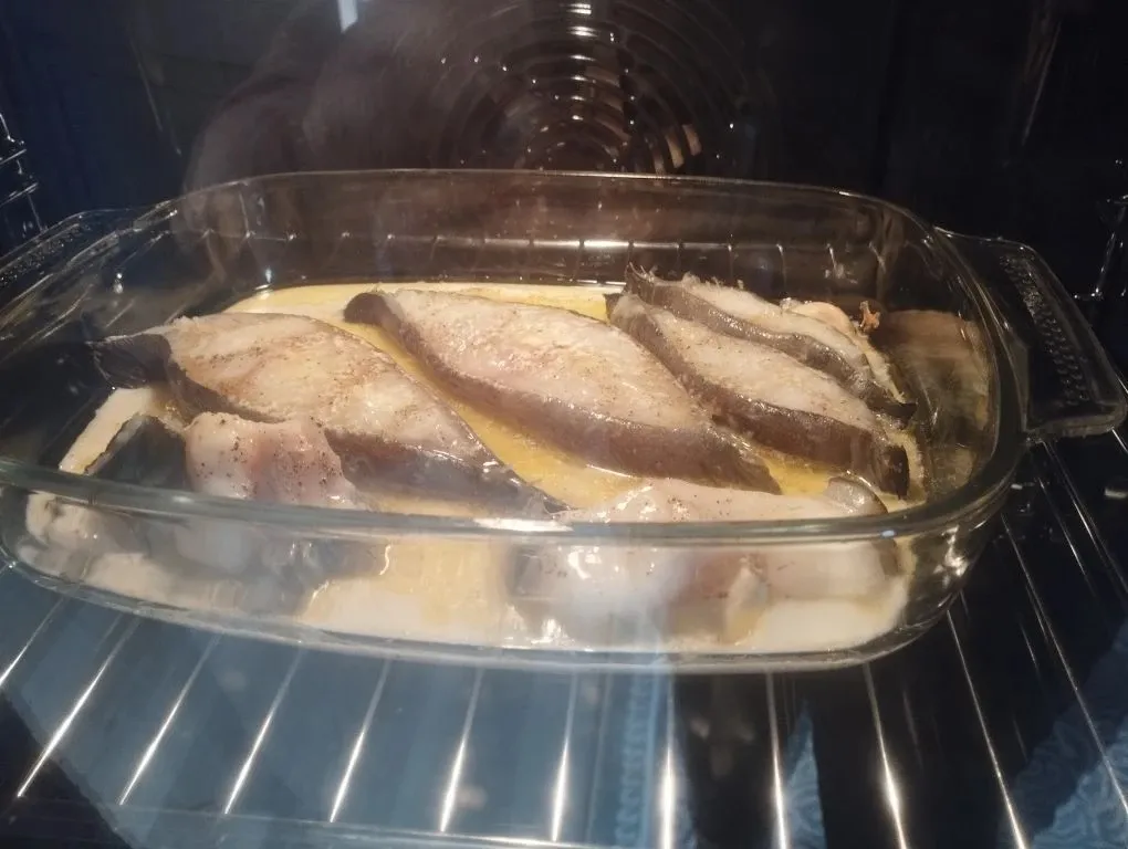 Поставьте рыбу в духовку при температуре 180°C на 45 минут.