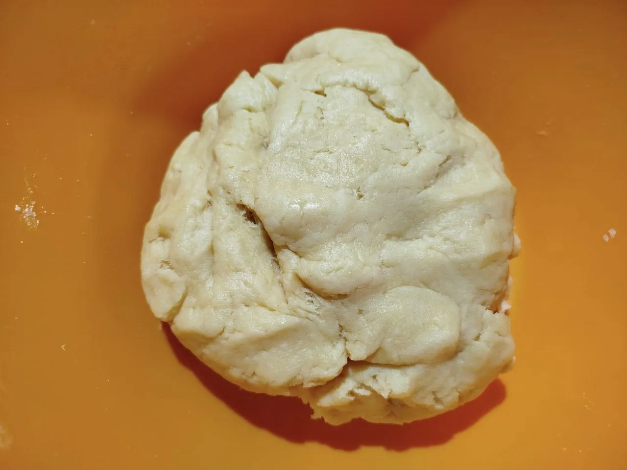 Соедините мучную крошку и желтки в однородную массу, долго не вымешивайте. Когда тесто соединится в единый комок, уберите в холодильник на 30 минут.
