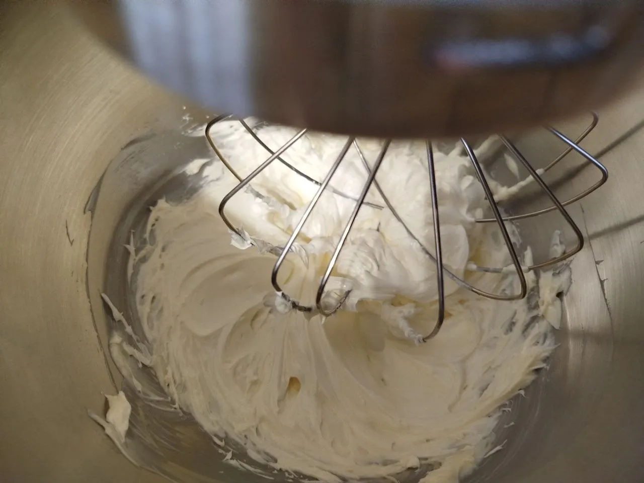 Когда масло станет пышным и увеличится в объеме, по одной банке добавьте варёное сгущённое молоко без растительных жиров, качественное, проверенных фирм. Всего 2 банки по 380 грамм. Взбейте до увеличения крема в объеме и приобретения «пышности».